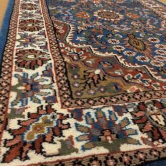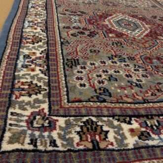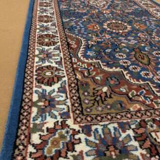 • Wool or Silk: The carpet is usually crafted from high-quality wool for durability and softness, or silk for a luxurious sheen. Often, a combination of both materials is used to enhance texture and appearance.
