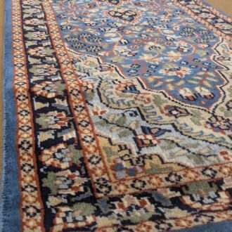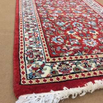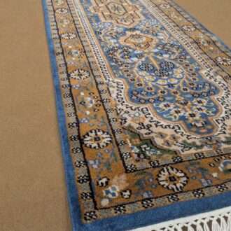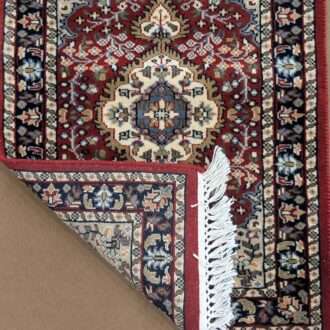 • Wool or Silk: High-quality wool or silk is commonly used, contributing to the carpet’s softness and durability. Wool is often favored for its resilience, while silk adds a lustrous sheen.