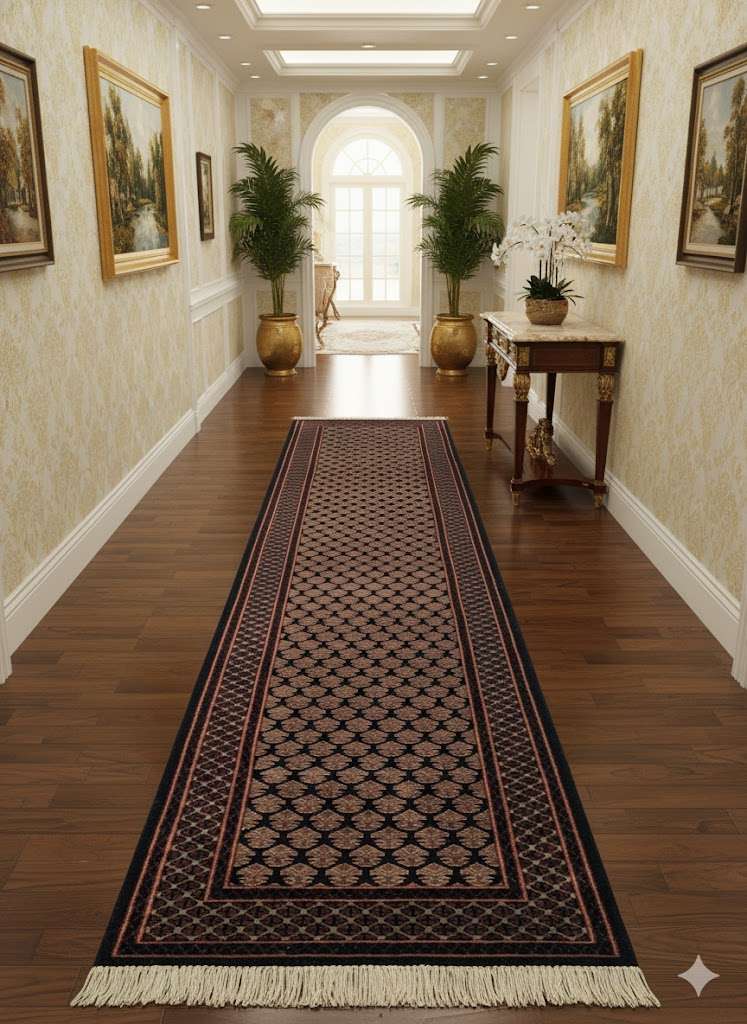 Black Baby Elephant Foot Print Hand Knotted Runner Wool Carpet – 2.5FT X 10FT | 75CM X 300CM