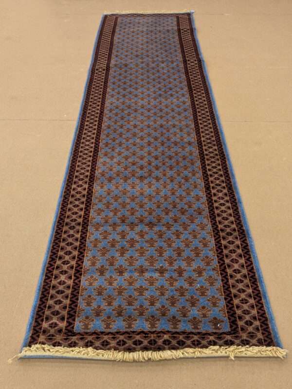 Blue Baby Elephant Foot Print Hand Knotted Runner Wool Carpet – 2.5FT X 10FT | 75CM X 300CM