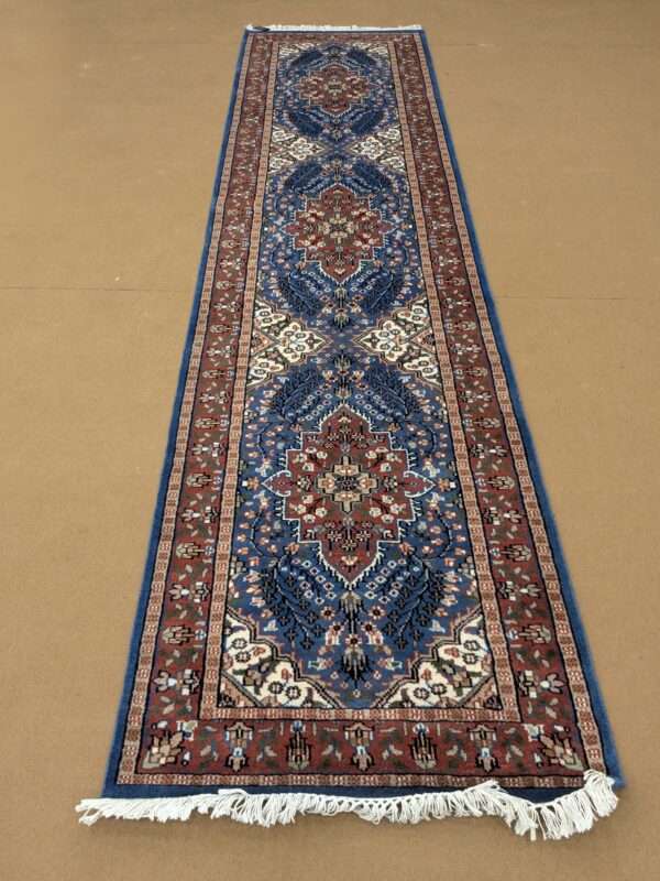 Blue Persian Hand Knotted Runner Wool Carpet – 2.5FT X 10FT | 75CM X 300CM