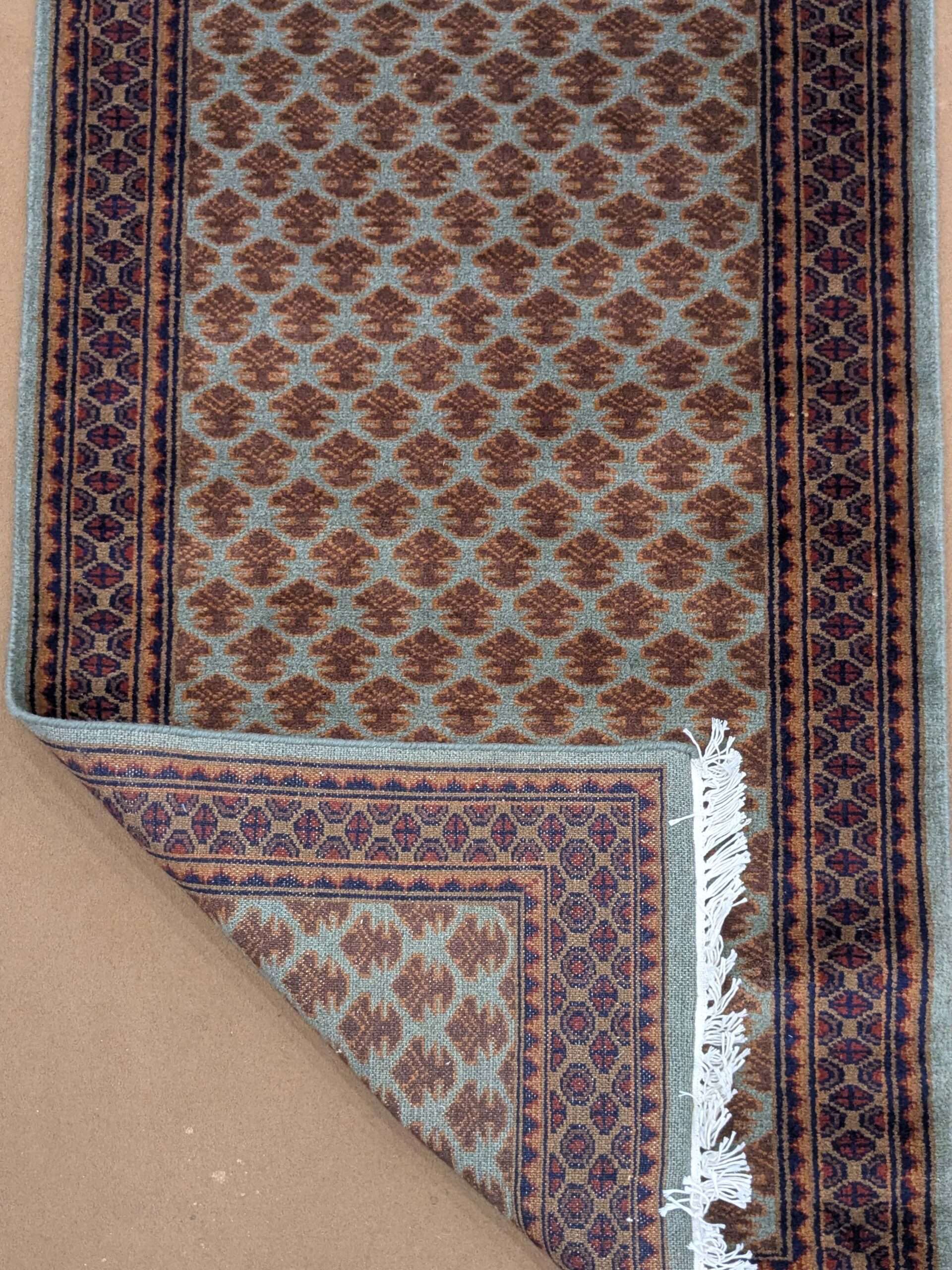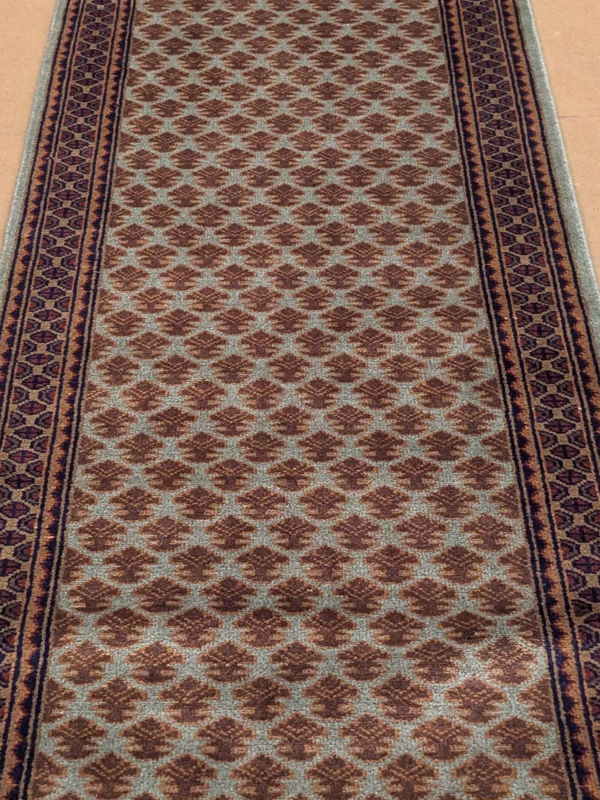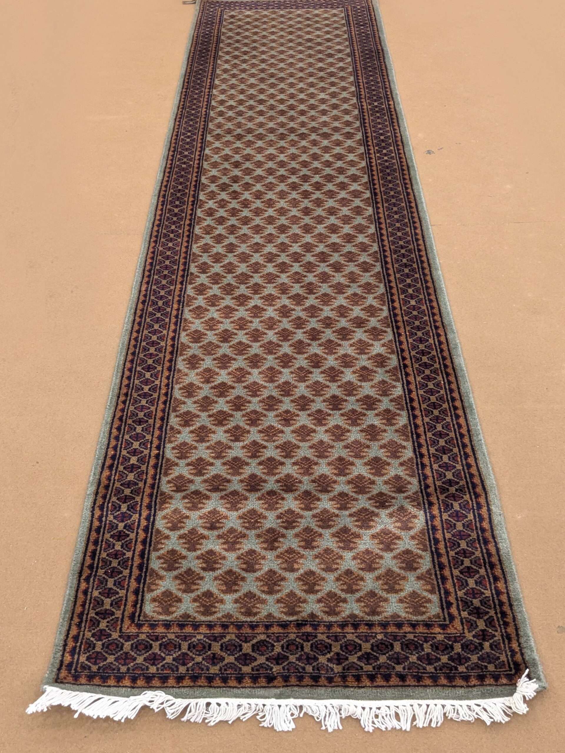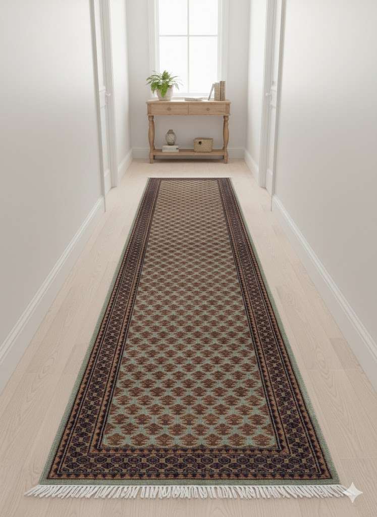 Green Baby Elephant Foot Print Hand Knotted Runner Wool Carpet – 2.5FT X 10FT | 75CM X 300CM