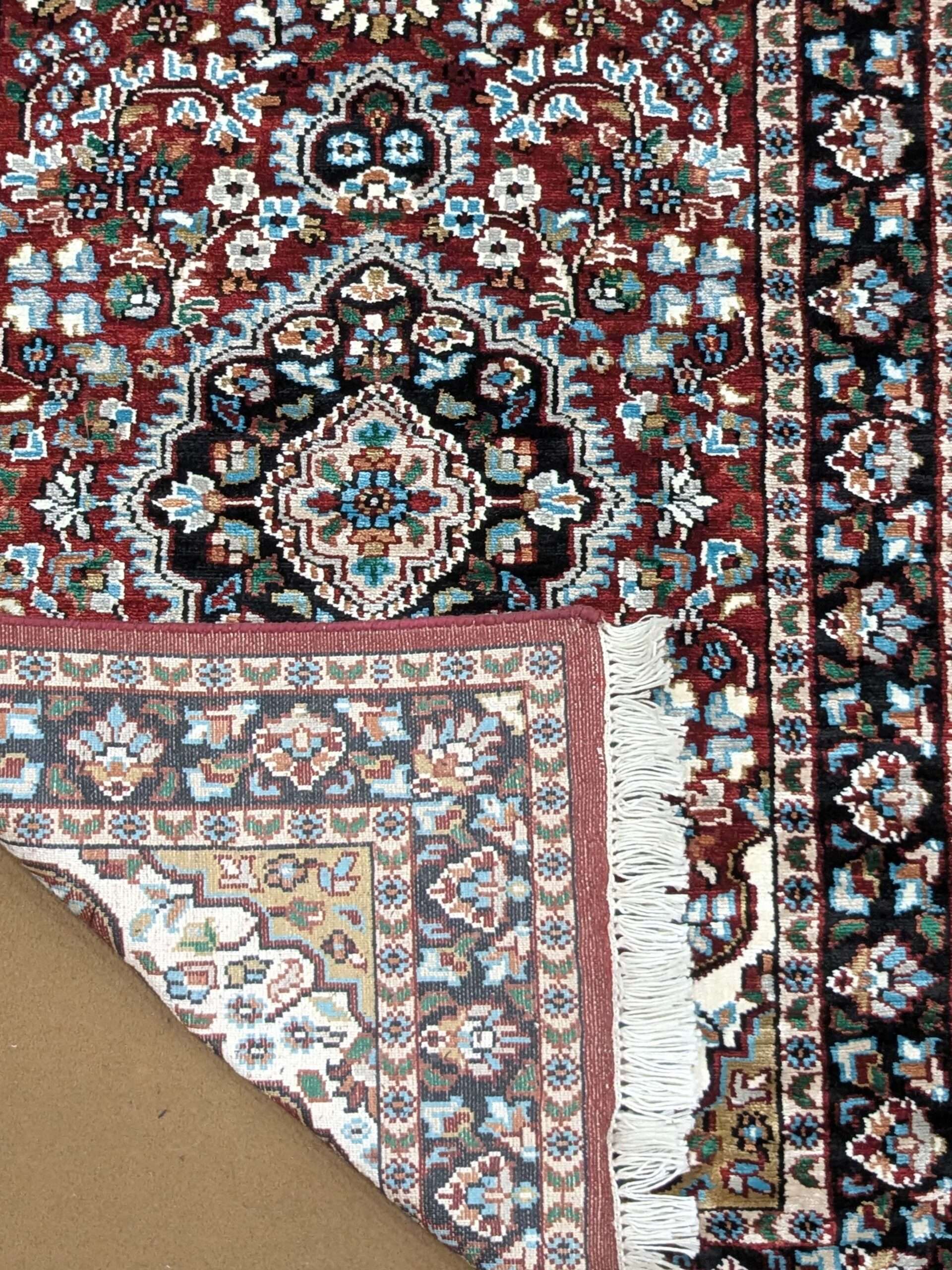 The carpets from Agra often feature intricate motifs inspired by Mughal art, floral patterns, geometric designs, or even scenes from nature and historical events. The quality of craftsmanship and attention to detail make these carpets highly sought after and cherished worldwide.