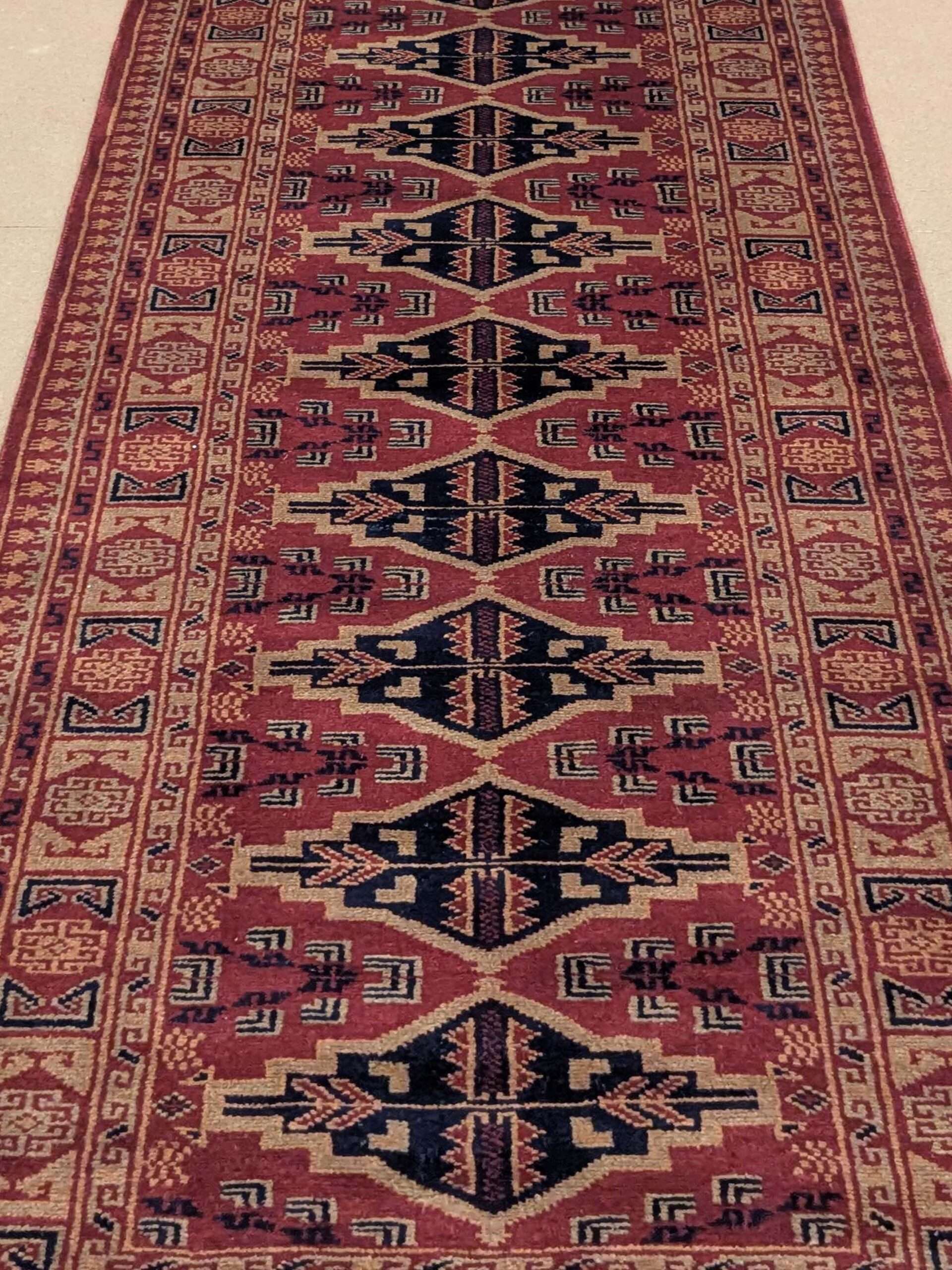 Red Tribal Hand Knotted Runner Wool Carpet – 2.5FT X 10FT | 75CM X 300CM
