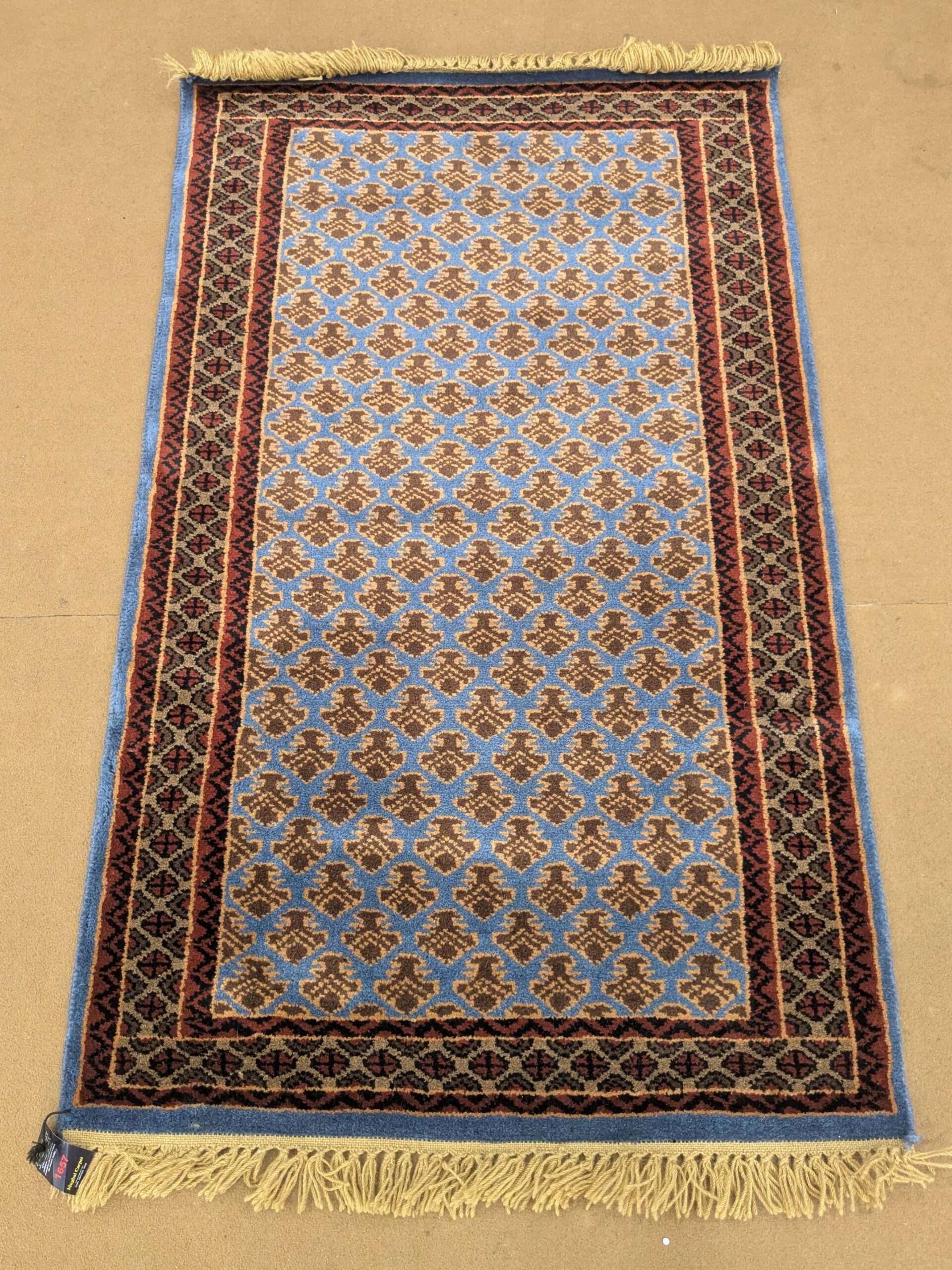 Blue Baby Elephant Foot Print Design Knotted Wool Carpet – 2.5FT X 4FT | 76CM X 122CM