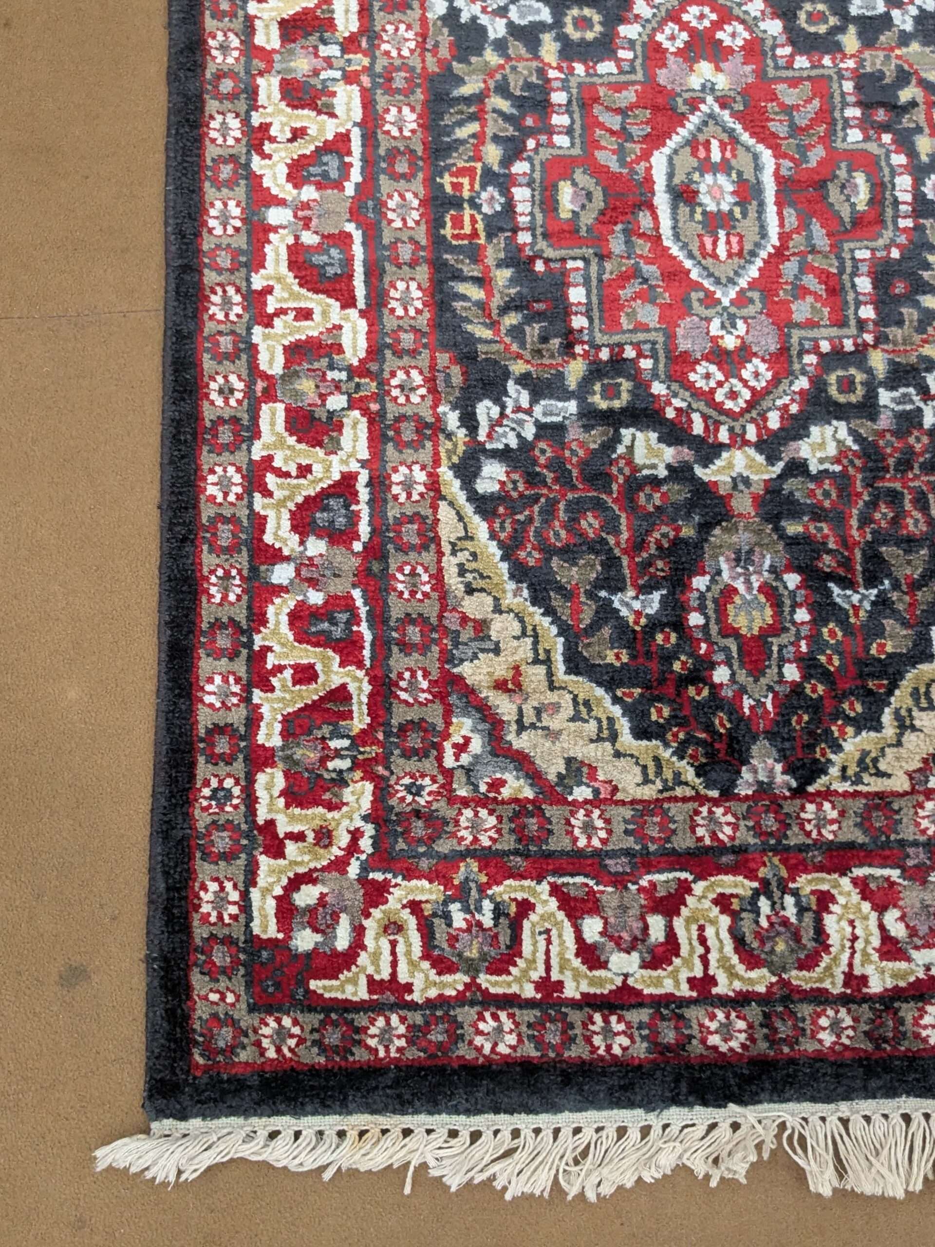 The carpets from Agra often feature intricate motifs inspired by Mughal art, floral patterns, geometric designs, or even scenes from nature and historical events. The quality of craftsmanship and attention to detail make these carpets highly sought after and cherished worldwide.