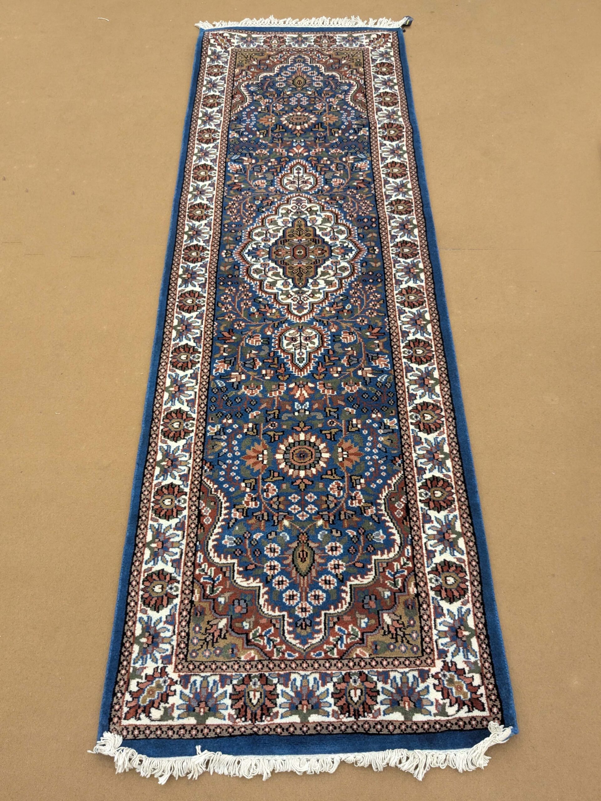 Blue Persian Hand Knotted Runner Wool Carpet – 2.5FT X 8FT | 75CM X 240CM