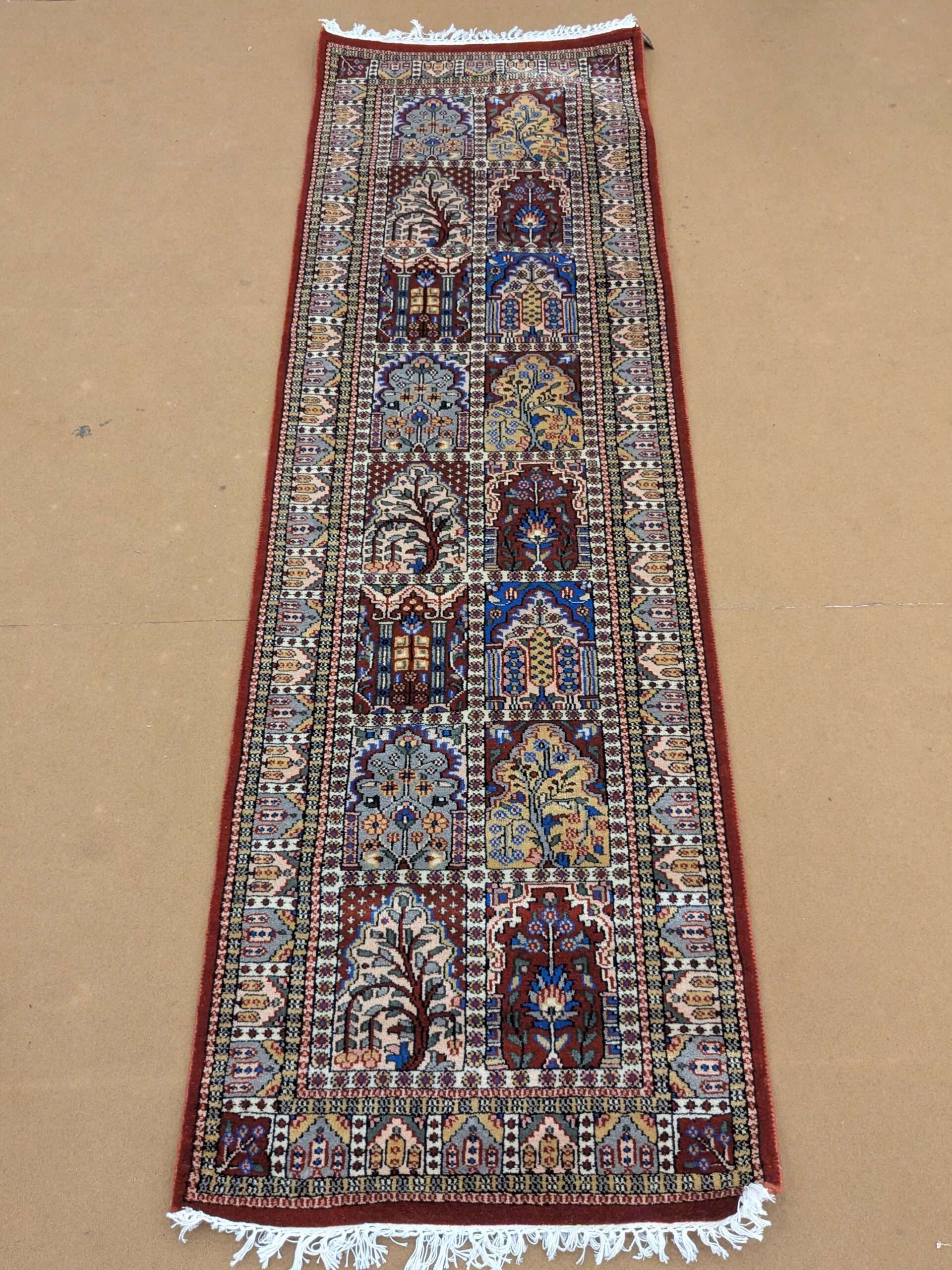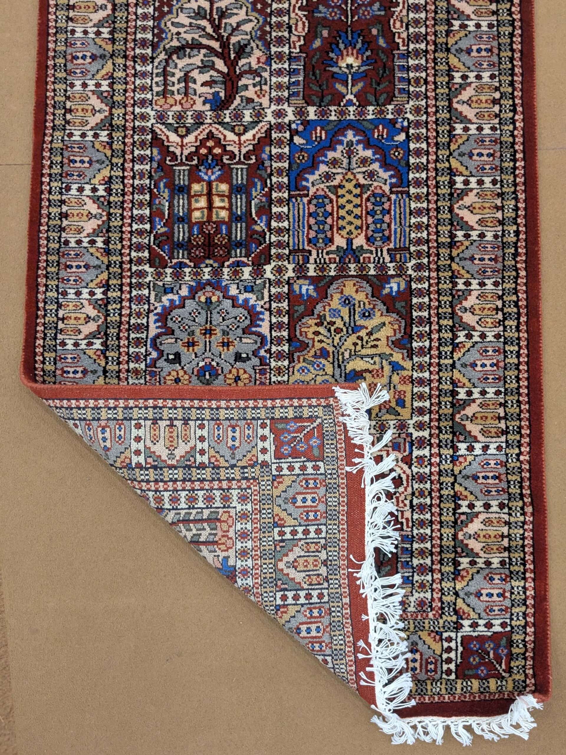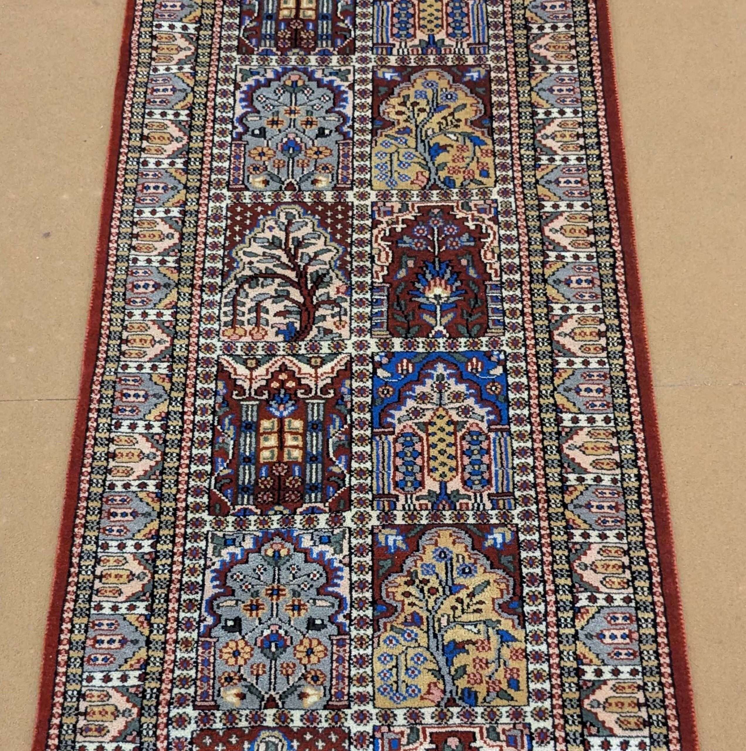 Red Mughal Garden Hand Knotted Runner Wool Carpet – 2.5FT X 8FT | 75CM X 240CM