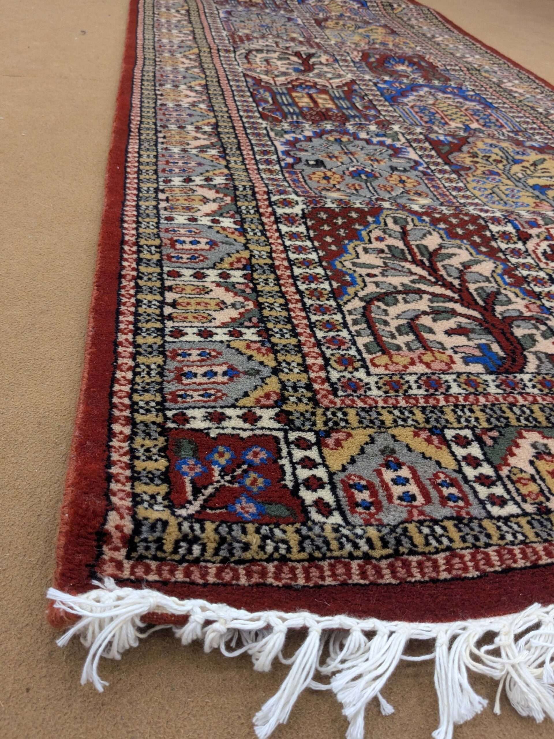 • Once the carpet is woven, the excess threads are trimmed and the surface is made even.