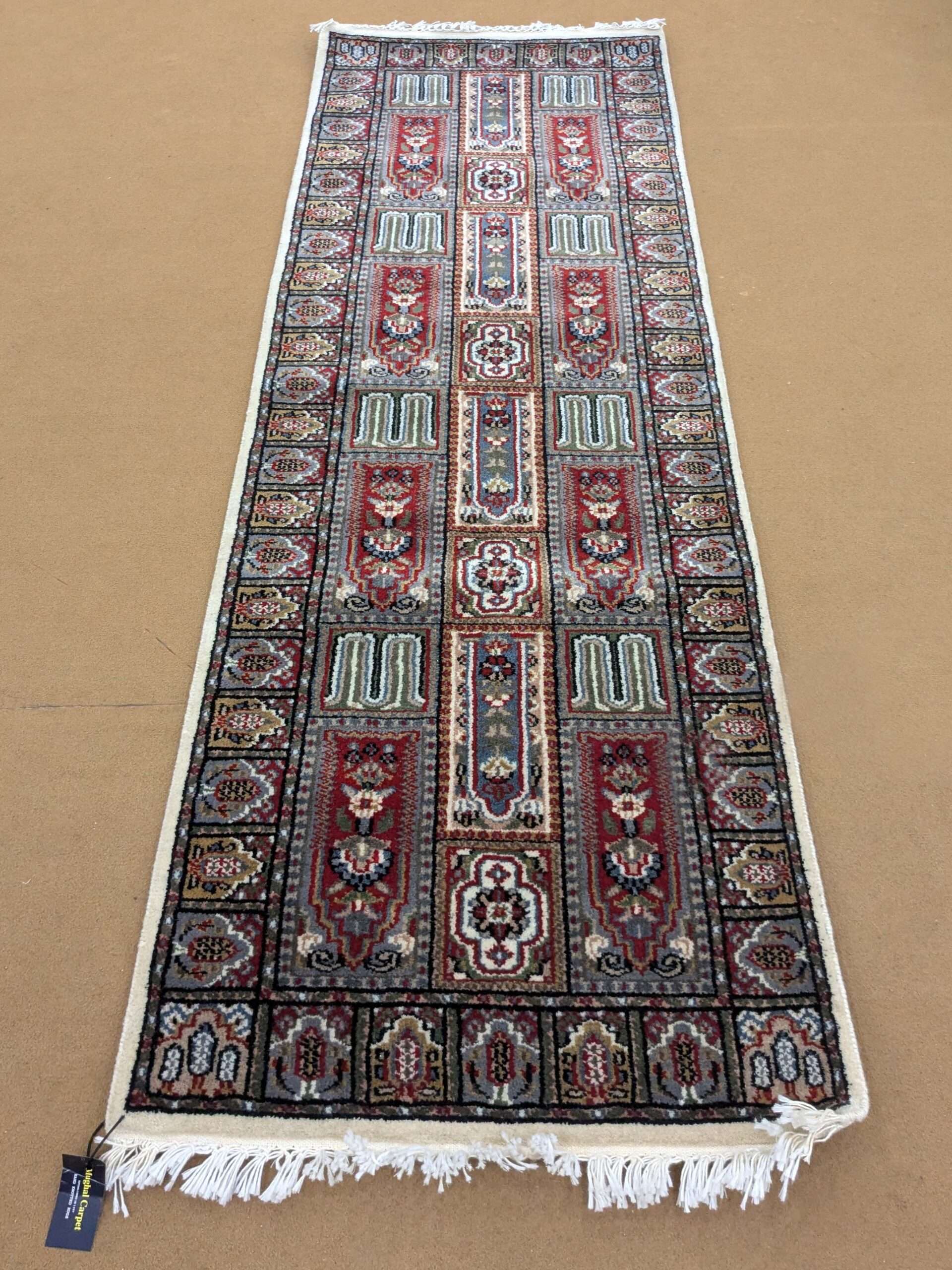 Beige Mughal Garden Hand Knotted Runner Wool Carpet – 2FT X 6FT | 60CM X 180CM