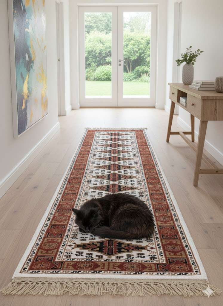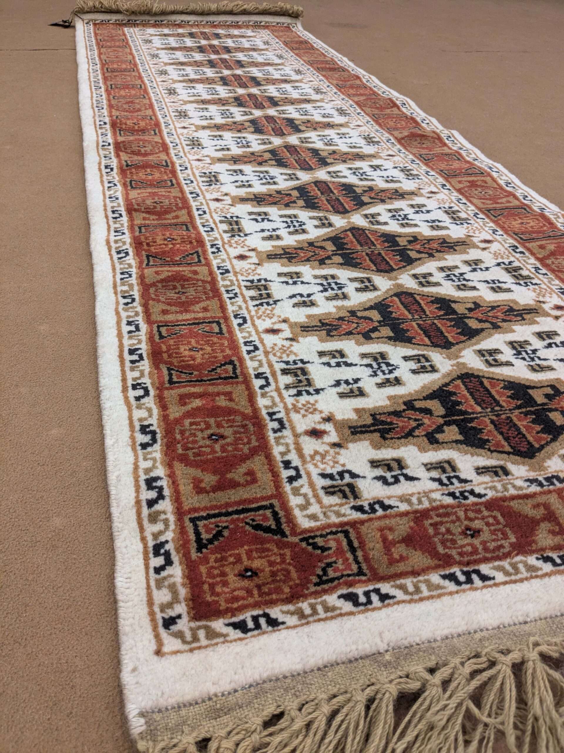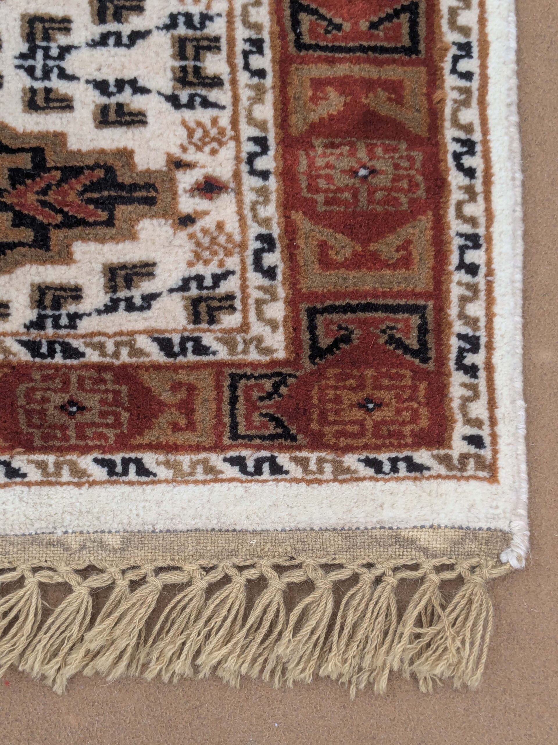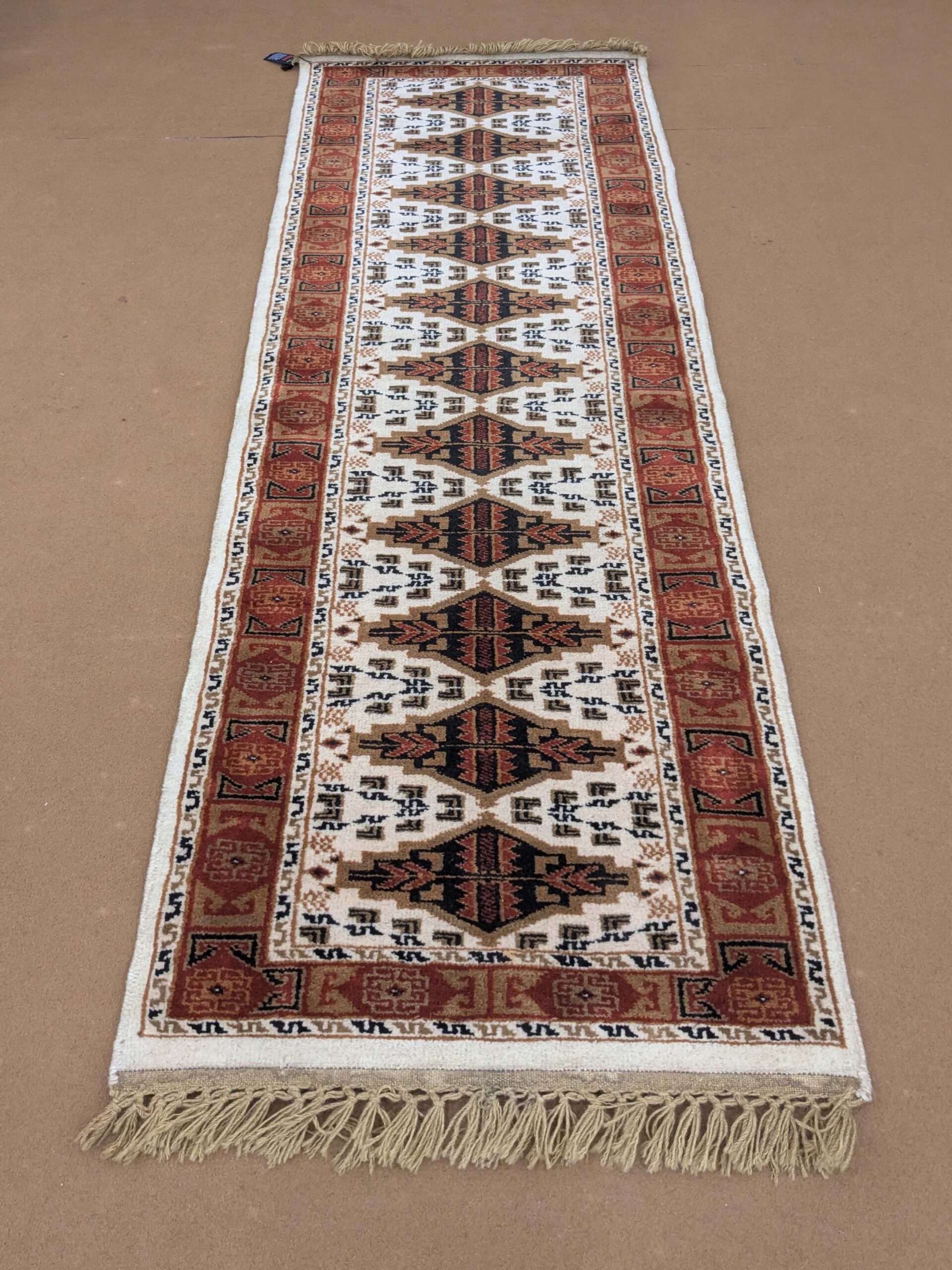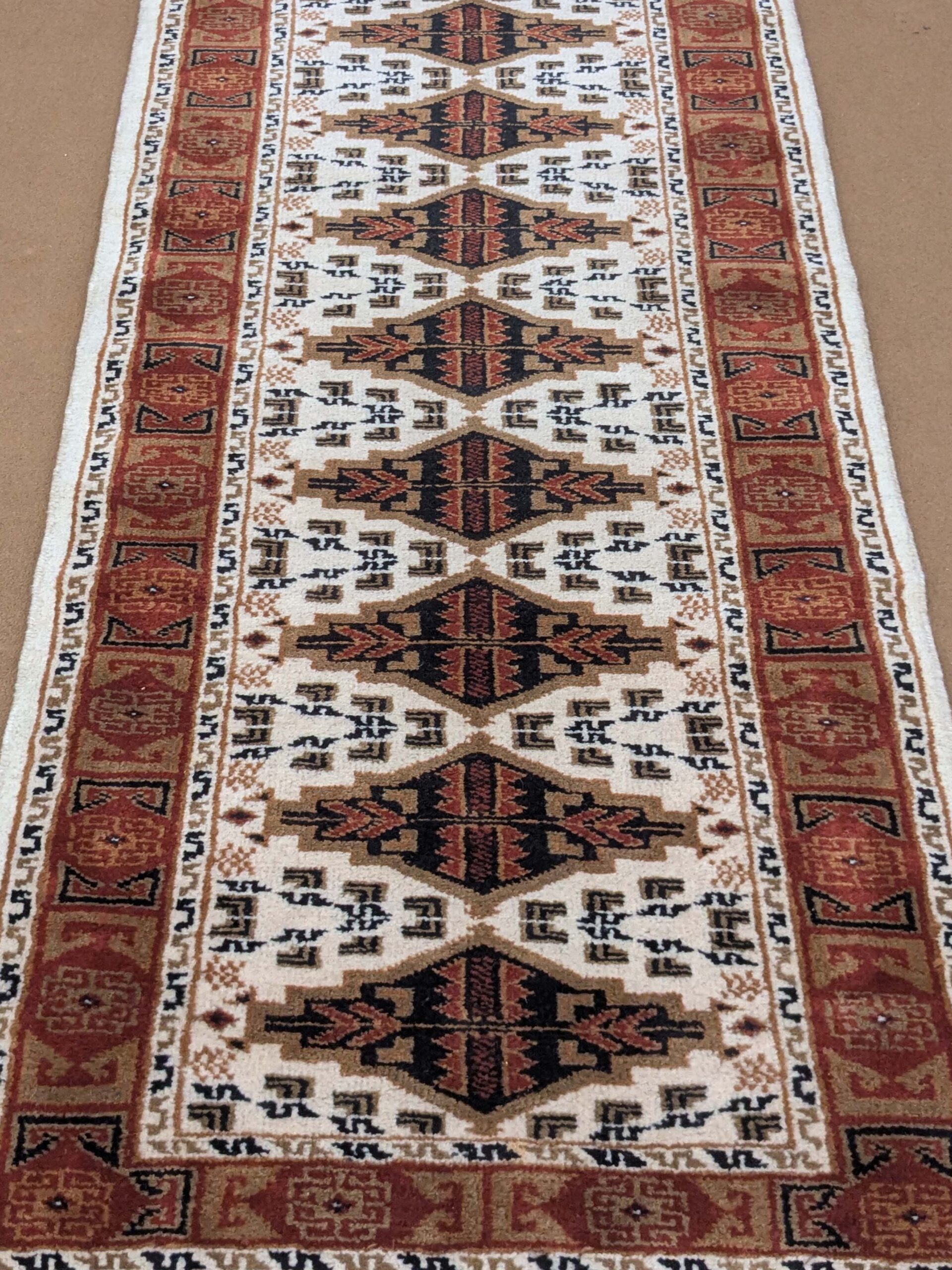 White Tribal Hand Knotted Runner Wool Carpet – 2FT X 6FT | 60CM X 180CM