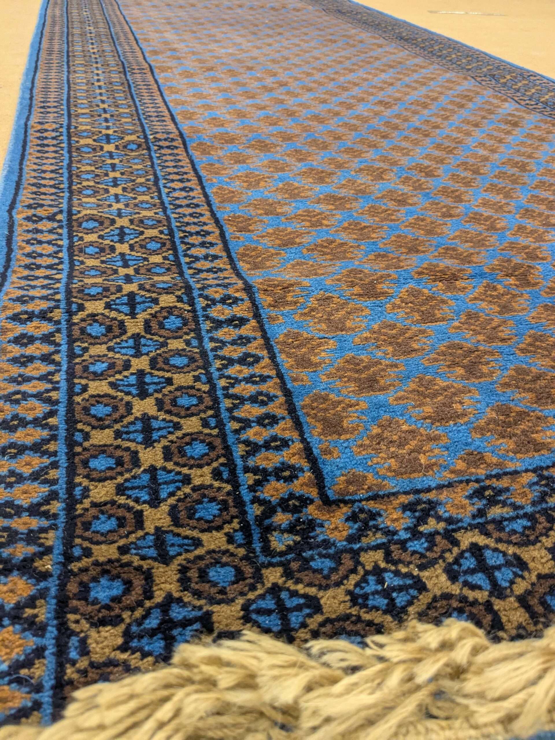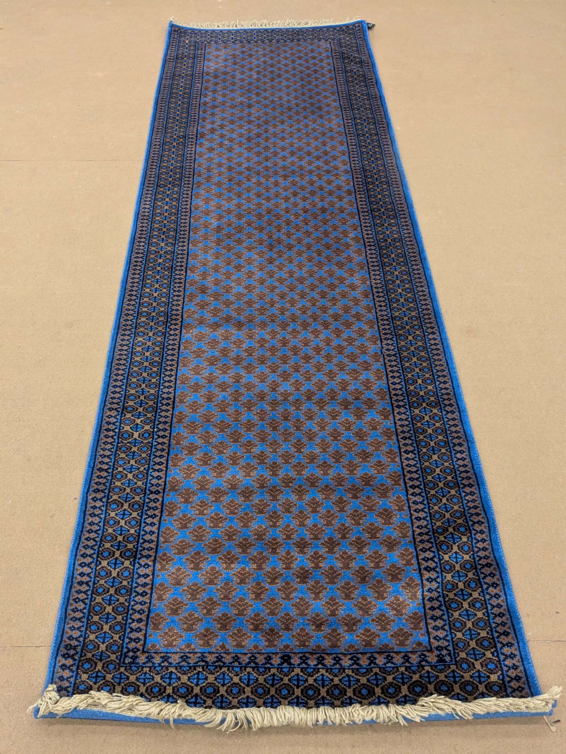 Blue Baby Elephant Foot Print Hand Knotted Runner Wool Carpet – 3FT X 10FT | 90CM X 300CM
