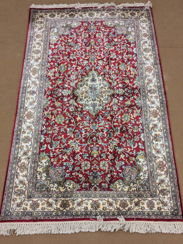 Red Persian Design Silk On Cotton Knotted Carpet – 3FT X 5FT | 90CM X 150CM