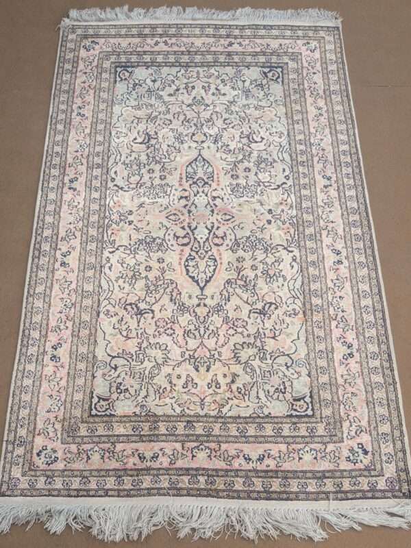 White Traditional Persian Silk On Cotton Knotted Carpet – 3FT X 5FT | 90CM X 150CM