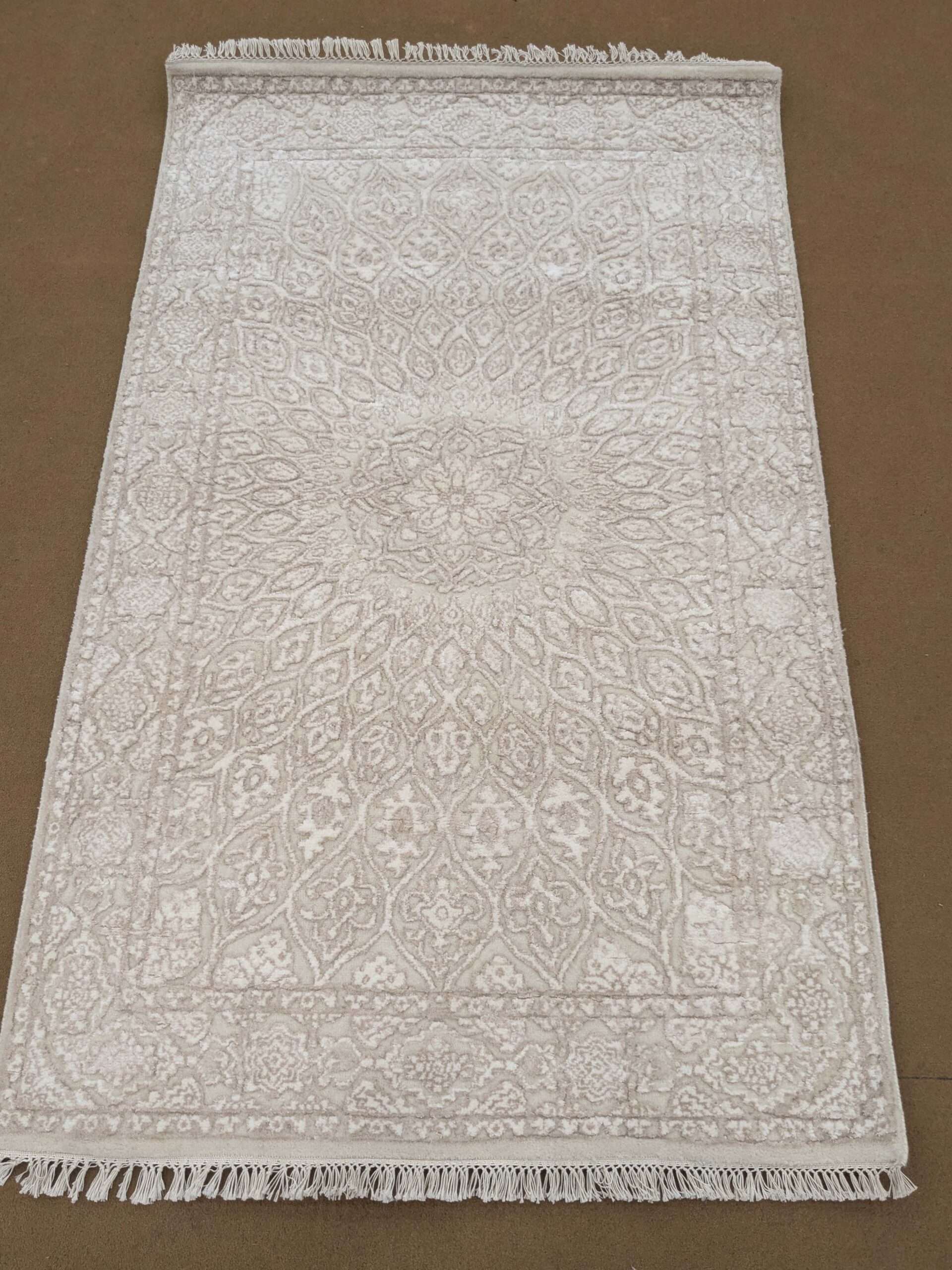 Beige Double Hand Knotted Wool Carpet – 3FT X 5FT | 90CM X 150CM