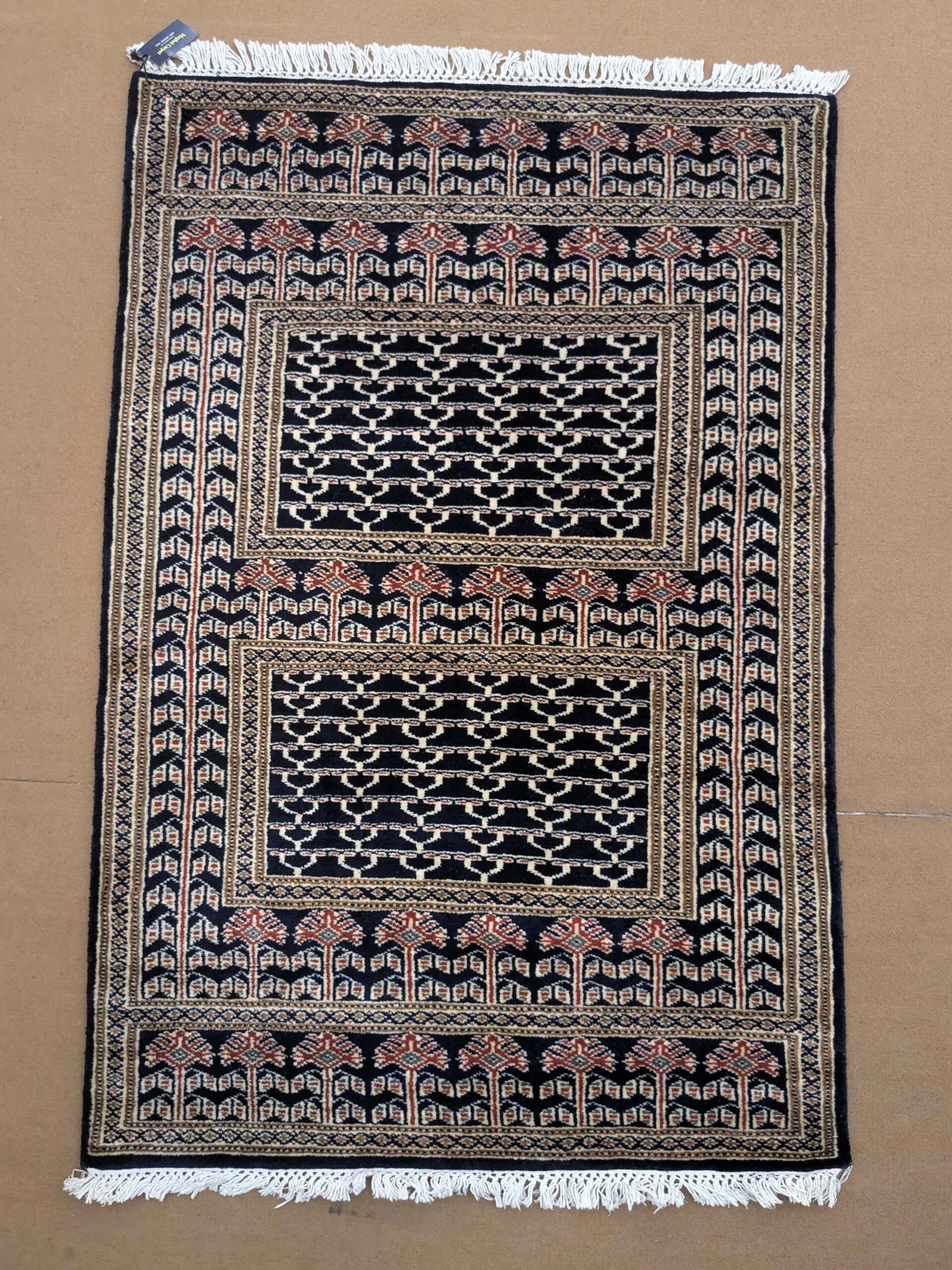 Black Family Design Knotted Wool Carpet – 3FT X 5FT | 90CM X 150CM
