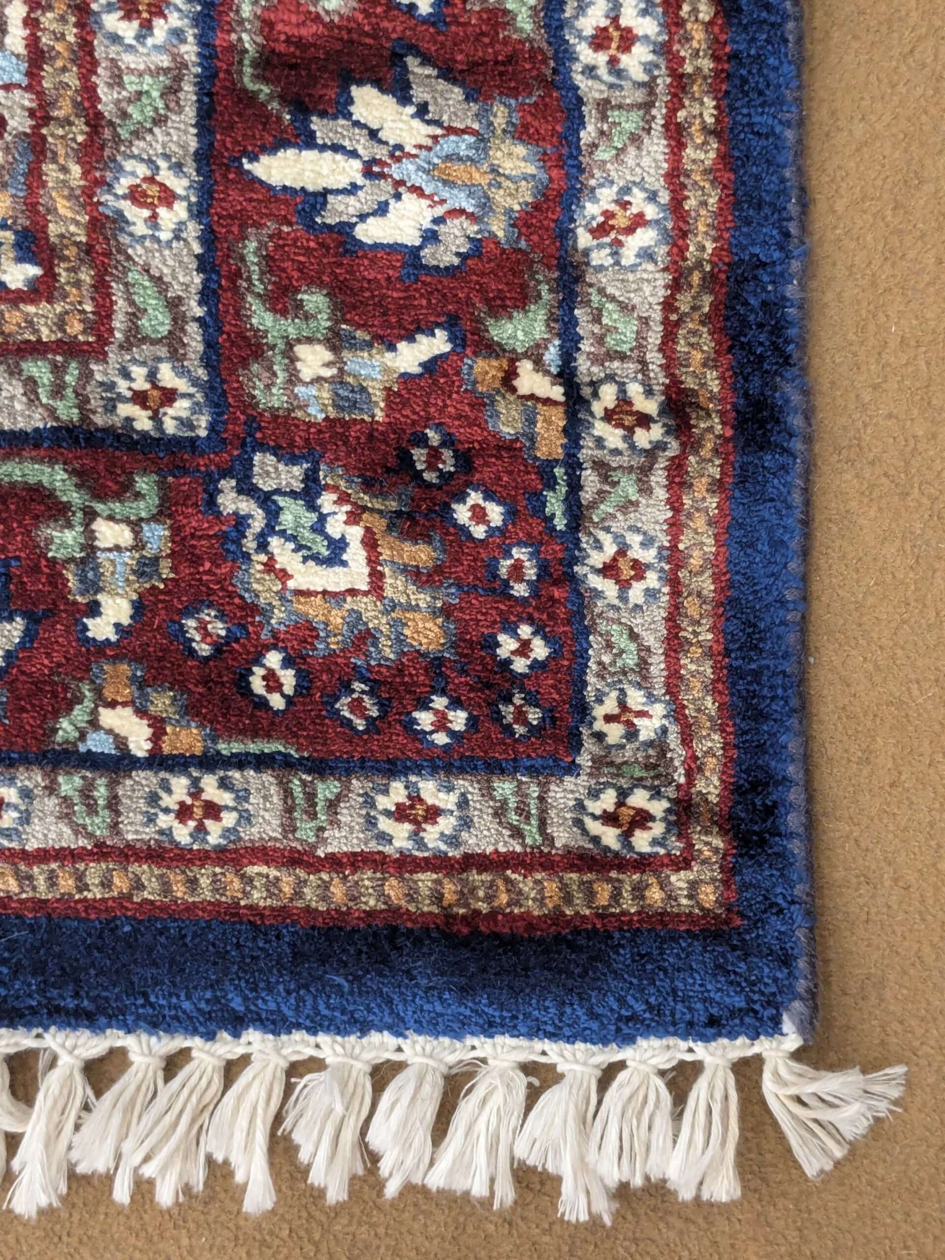 The carpets from Agra often feature intricate motifs inspired by Mughal art, floral patterns, geometric designs, or even scenes from nature and historical events. The quality of craftsmanship and attention to detail make these carpets highly sought after and cherished worldwide.