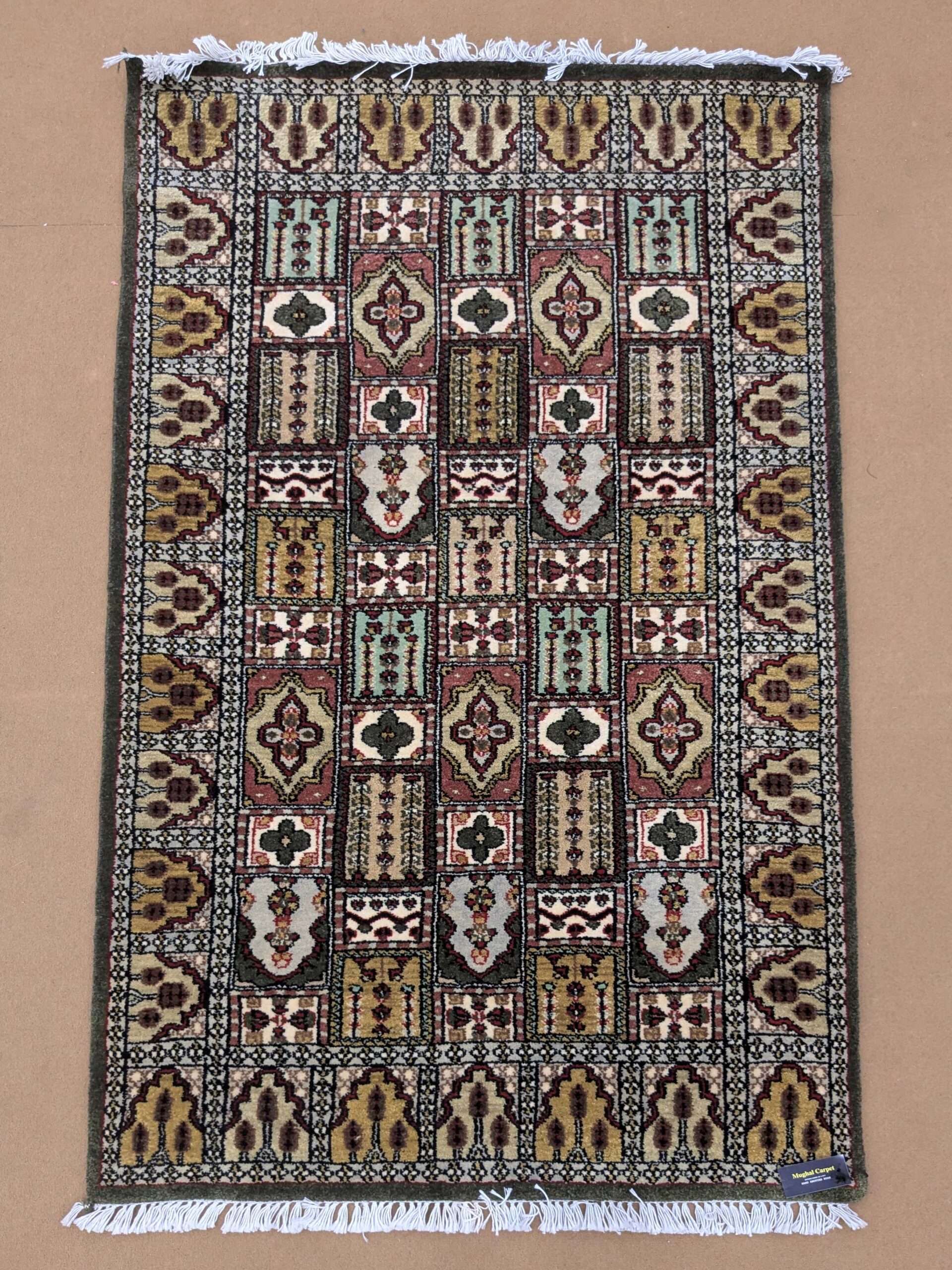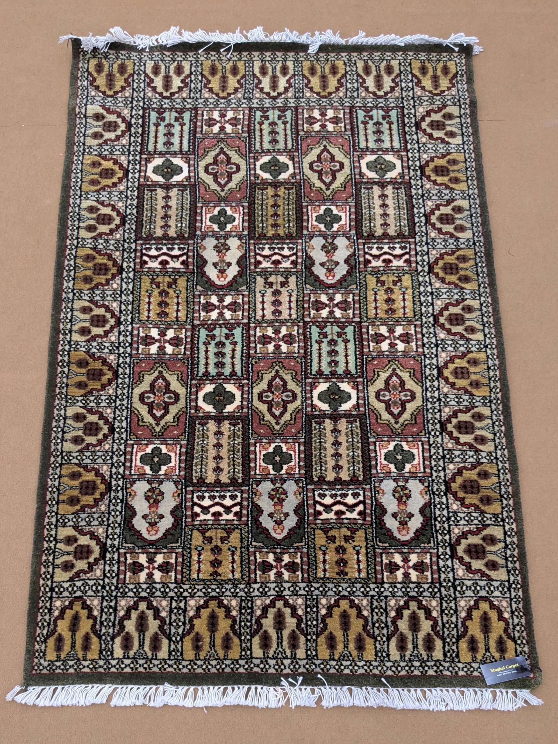 Green Mughal Garden Knotted Wool Carpet – 3FT X 5FT | 90CM X 150CM