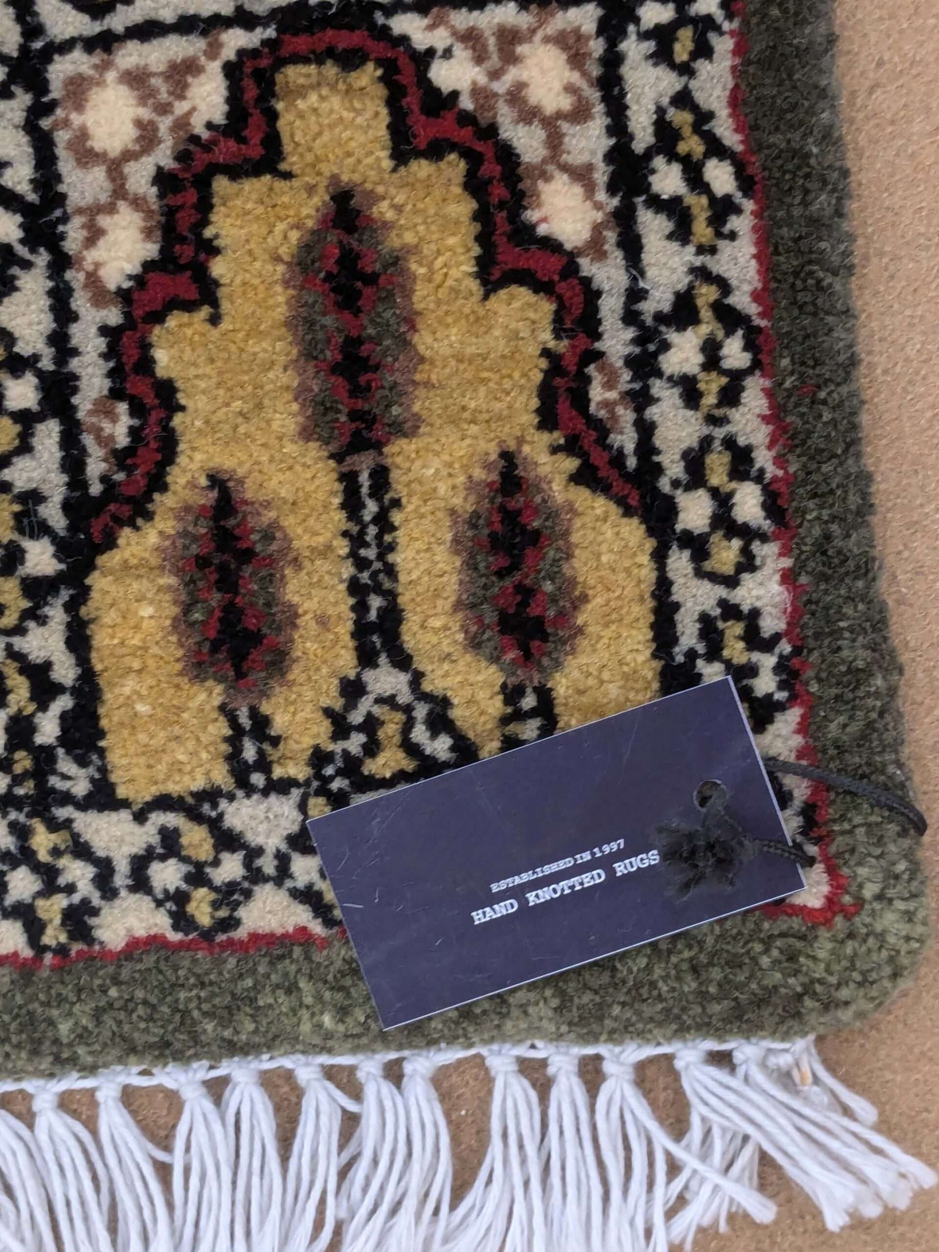 - The finished handmade carpet is now ready to be used or sold.