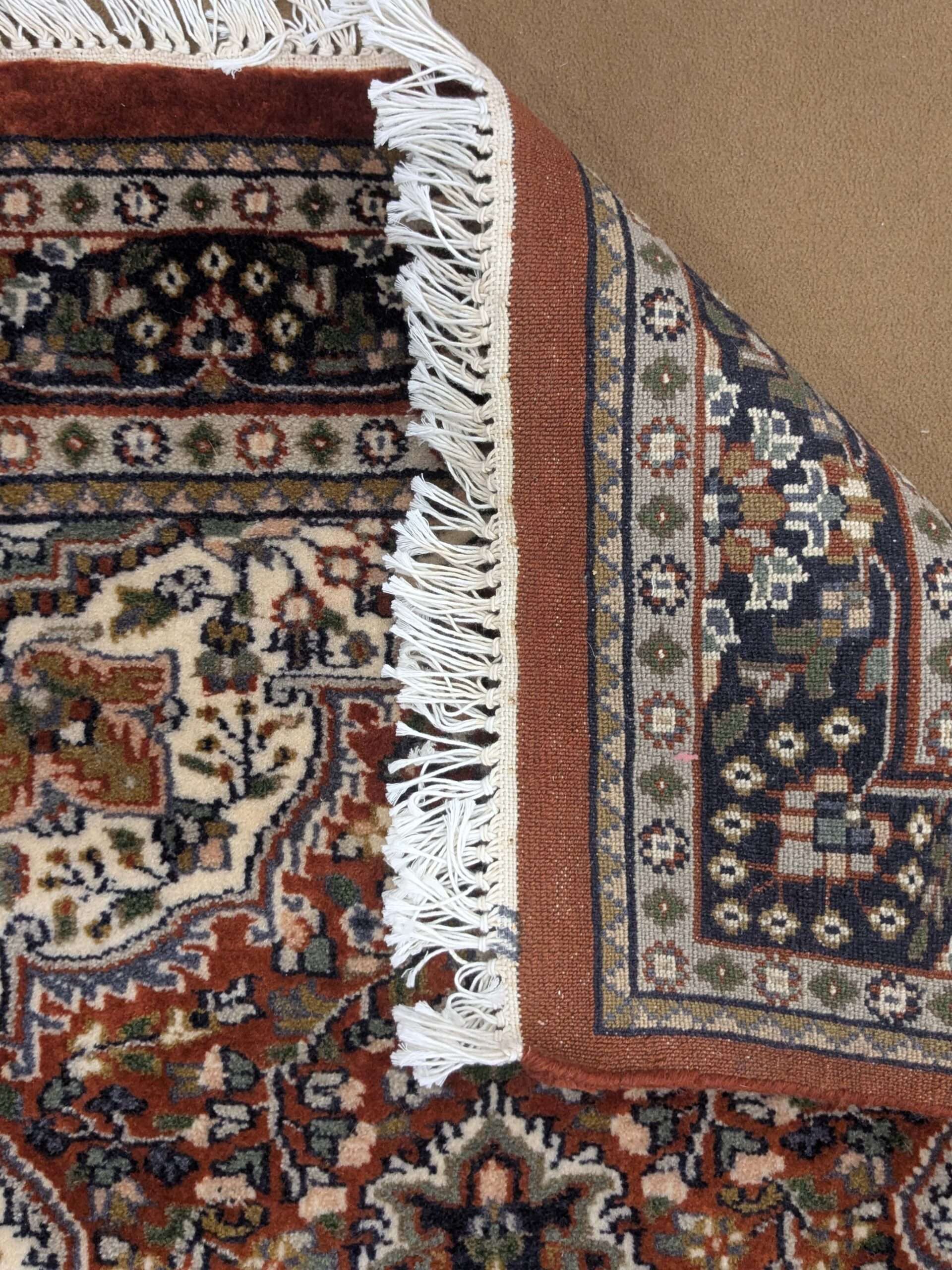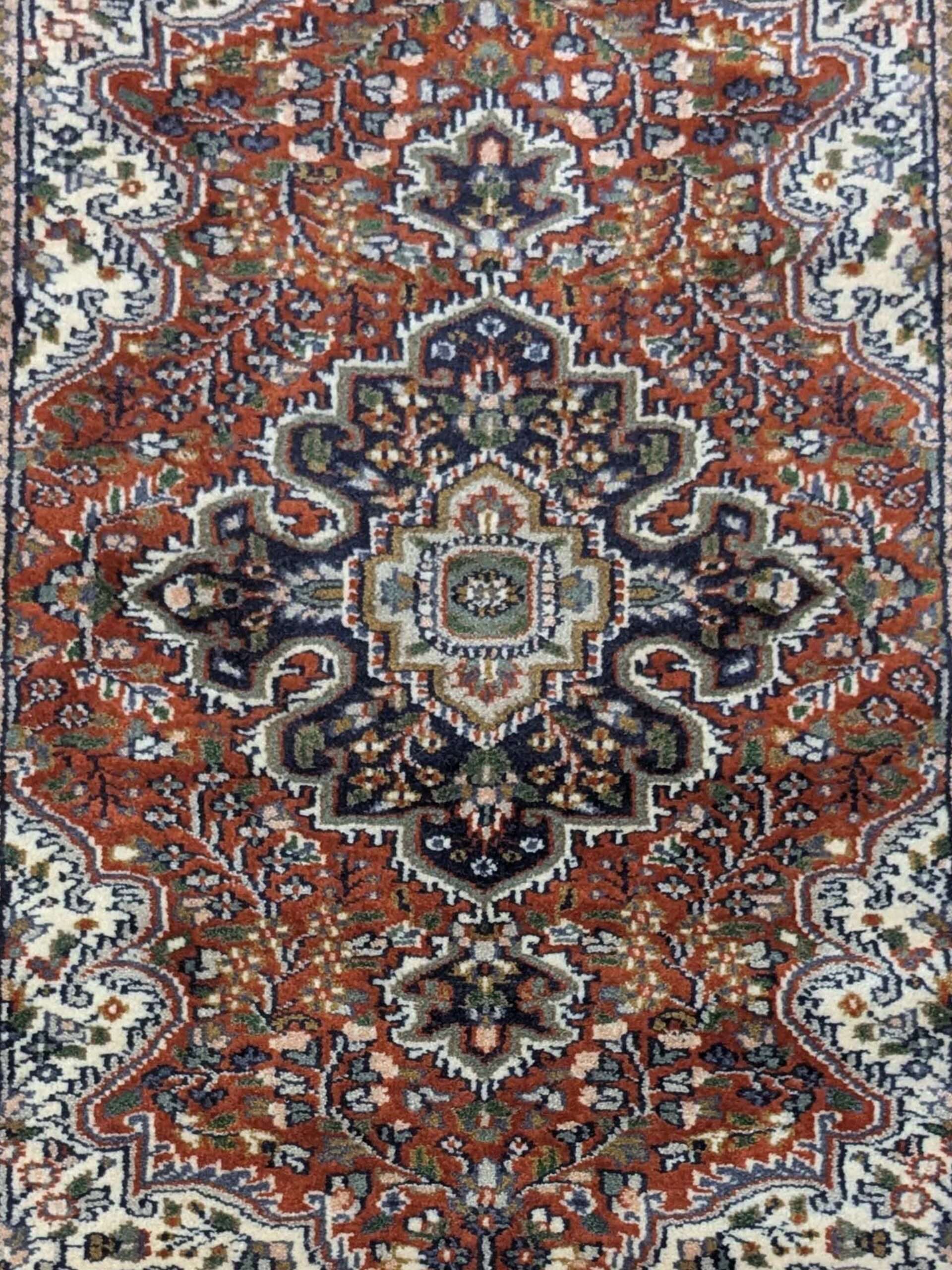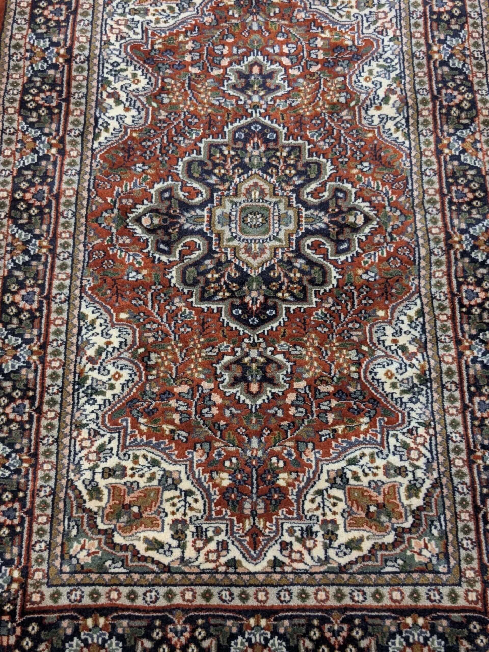 The carpets from Agra often feature intricate motifs inspired by Mughal art, floral patterns, geometric designs, or even scenes from nature and historical events. The quality of craftsmanship and attention to detail make these carpets highly sought after and cherished worldwide.