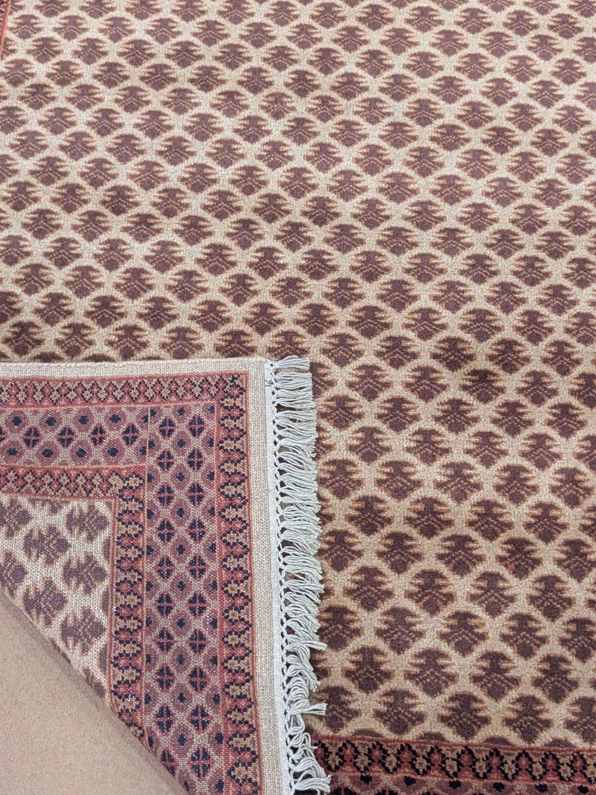 The carpets from Agra often feature intricate motifs inspired by Mughal art, floral patterns, geometric designs, or even scenes from nature and historical events. The quality of craftsmanship and attention to detail make these carpets highly sought after and cherished worldwide.