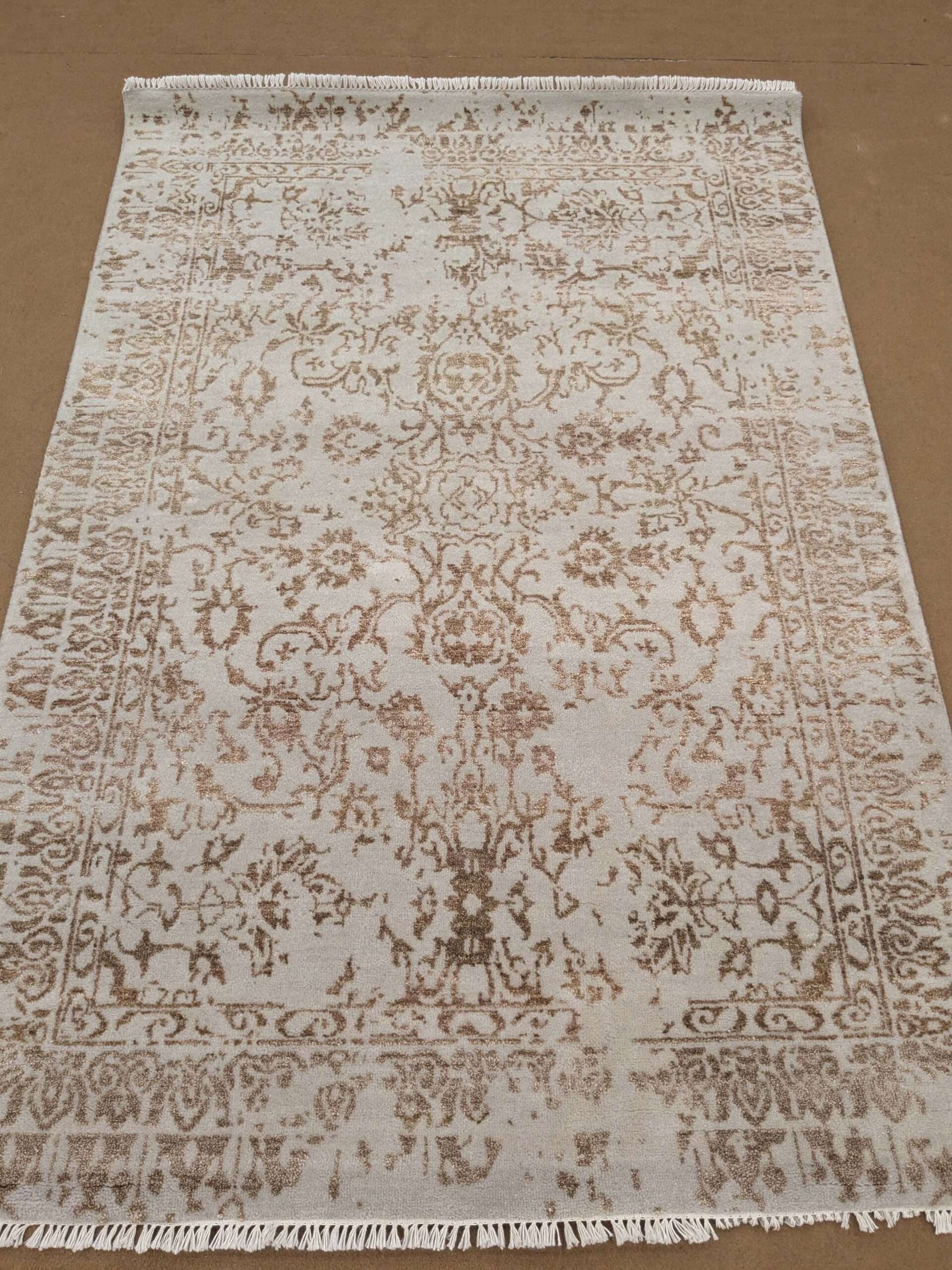 Beige Modern Floral Hand Knotted Wool Carpet – 4FT X 6FT | 120CM X 180CM