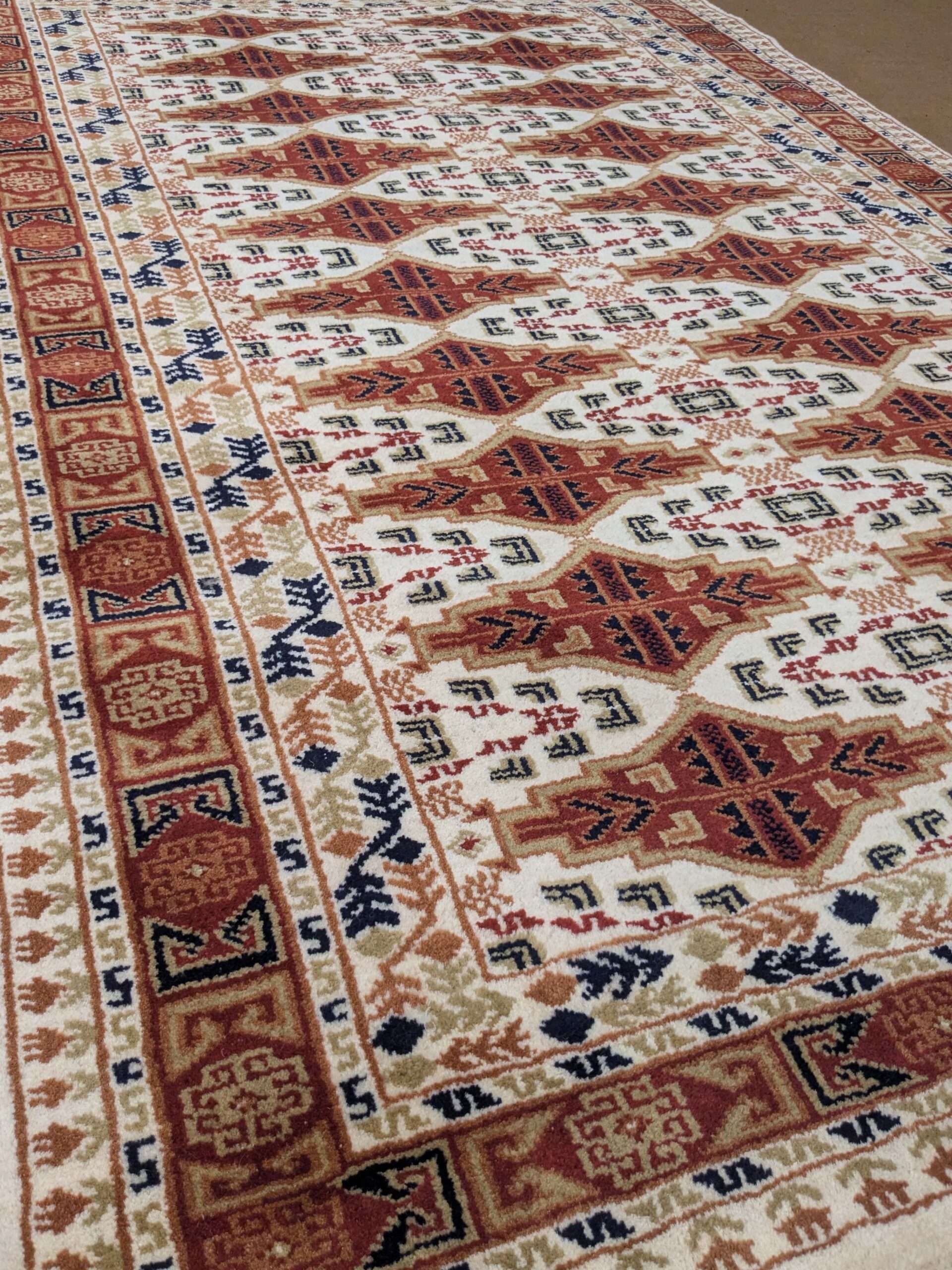 The carpets from Agra often feature intricate motifs inspired by Mughal art, floral patterns, geometric designs, or even scenes from nature and historical events. The quality of craftsmanship and attention to detail make these carpets highly sought after and cherished worldwide.