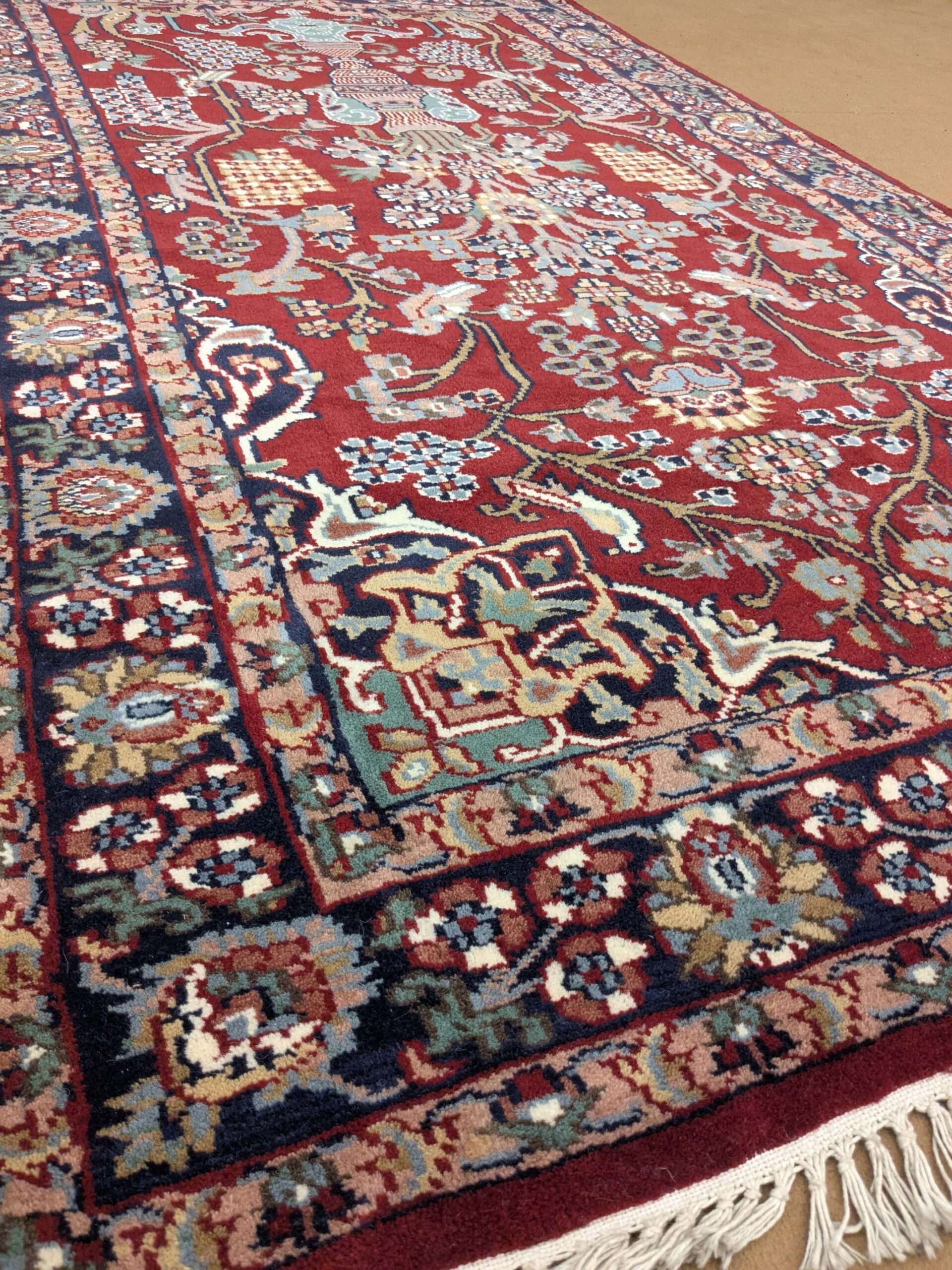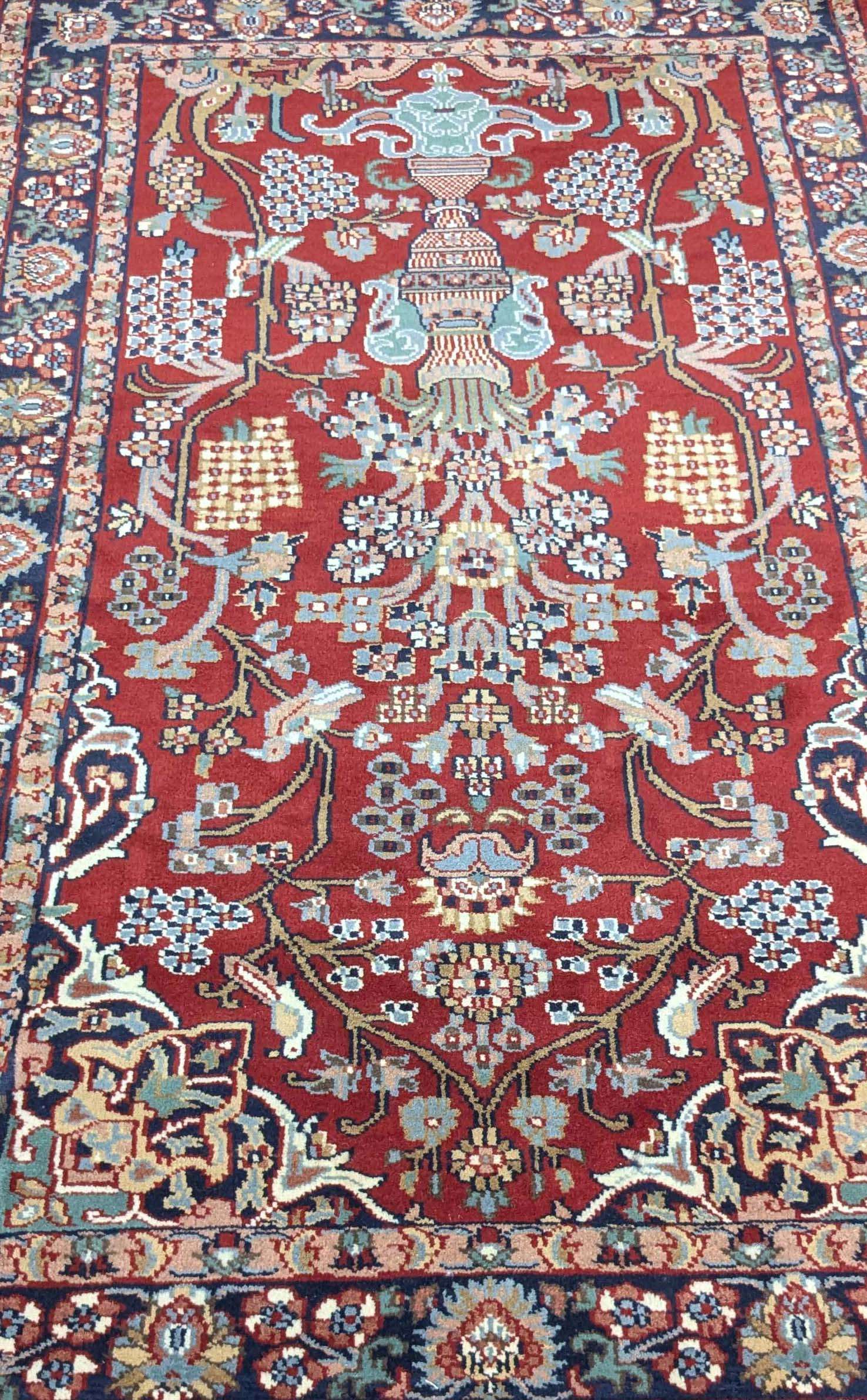 The carpets from Agra often feature intricate motifs inspired by Mughal art, floral patterns, geometric designs, or even scenes from nature and historical events. The quality of craftsmanship and attention to detail make these carpets highly sought after and cherished worldwide.