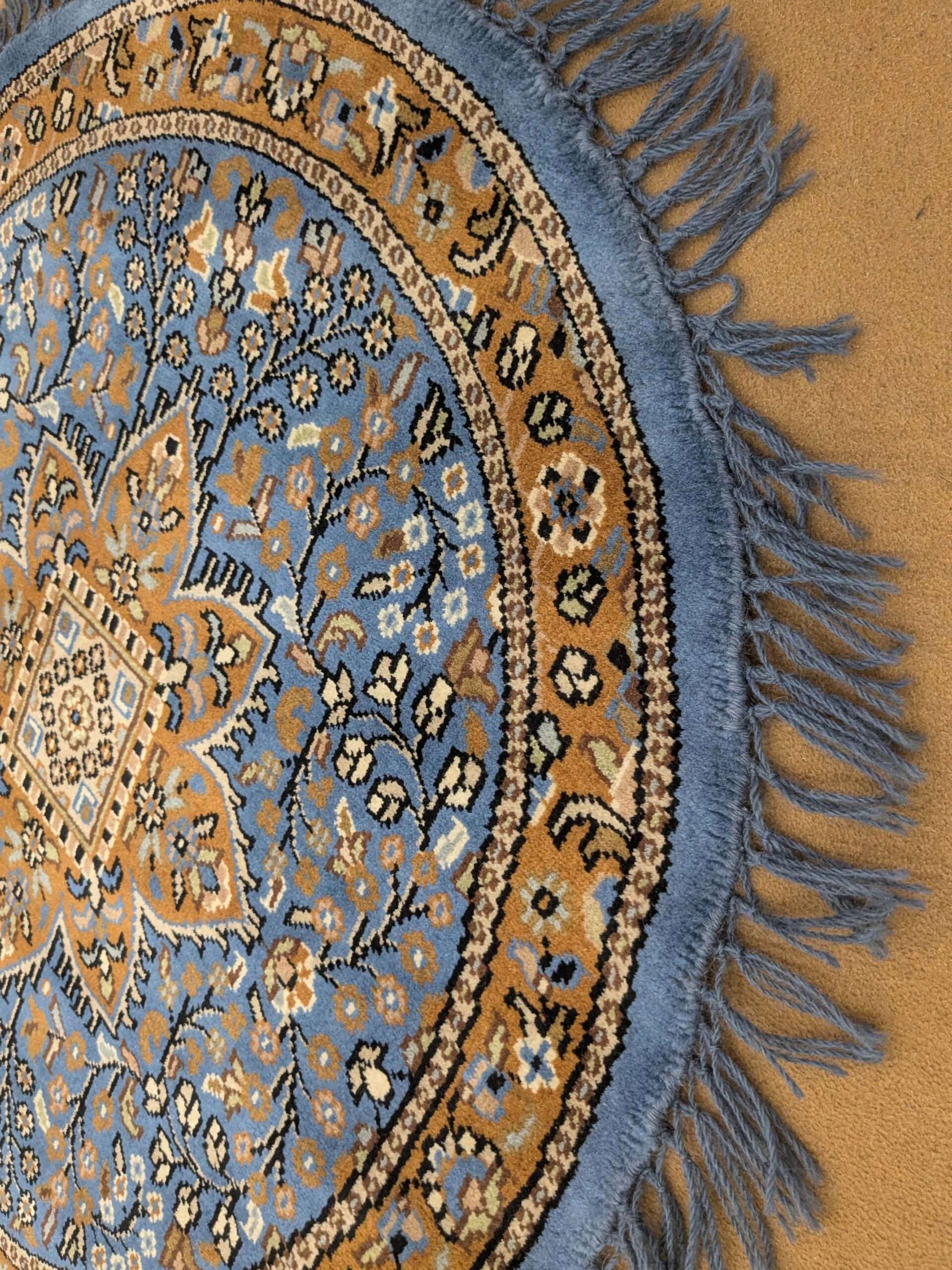 Blue Persian Hand Knotted Round Wool Carpet – 5FT X 5FT | 150CM X 150CM