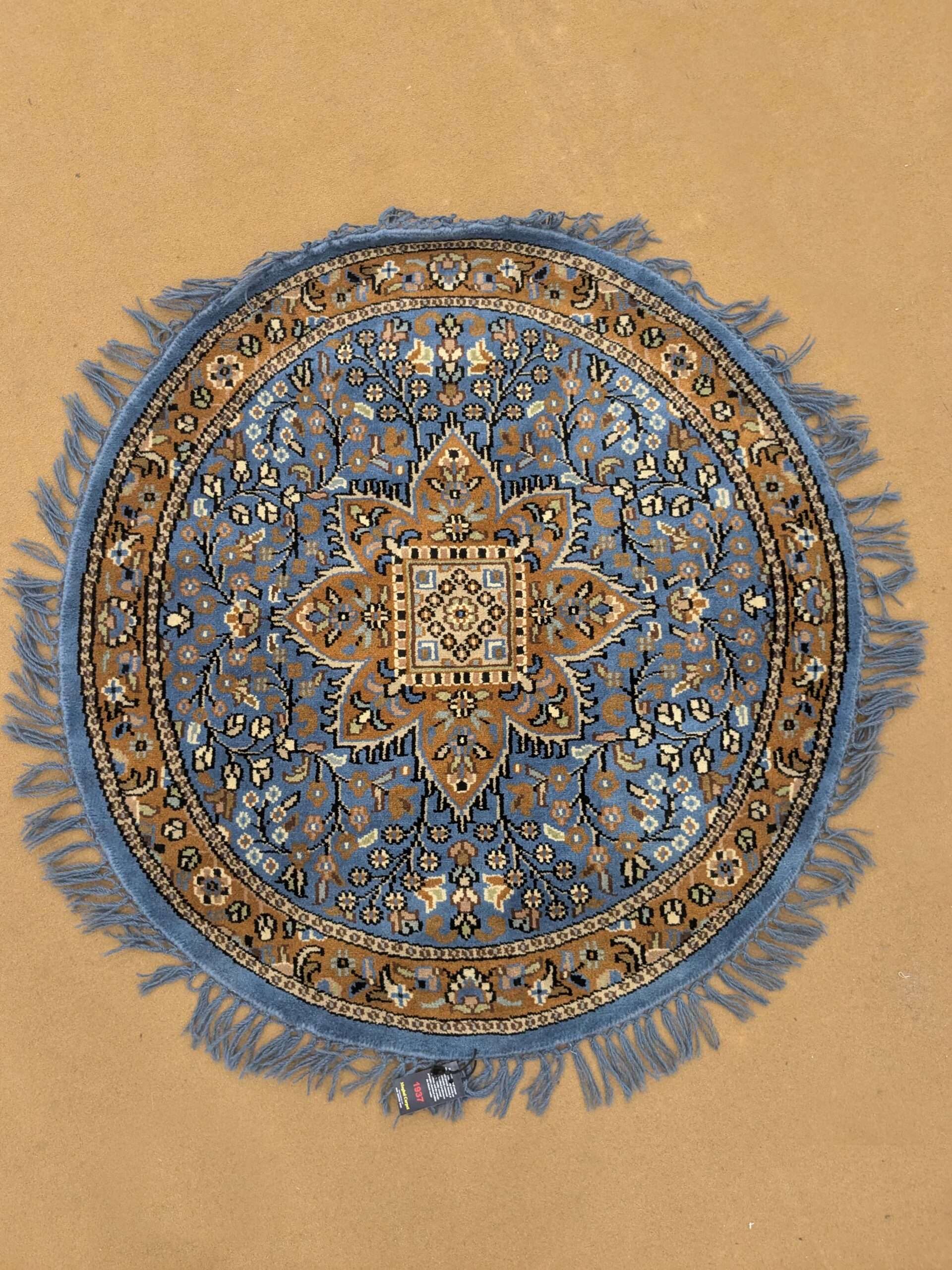 Be the first to review “Blue Persian Hand Knotted Round Wool Carpet – 5FT X 5FT | 150CM X 150CM”