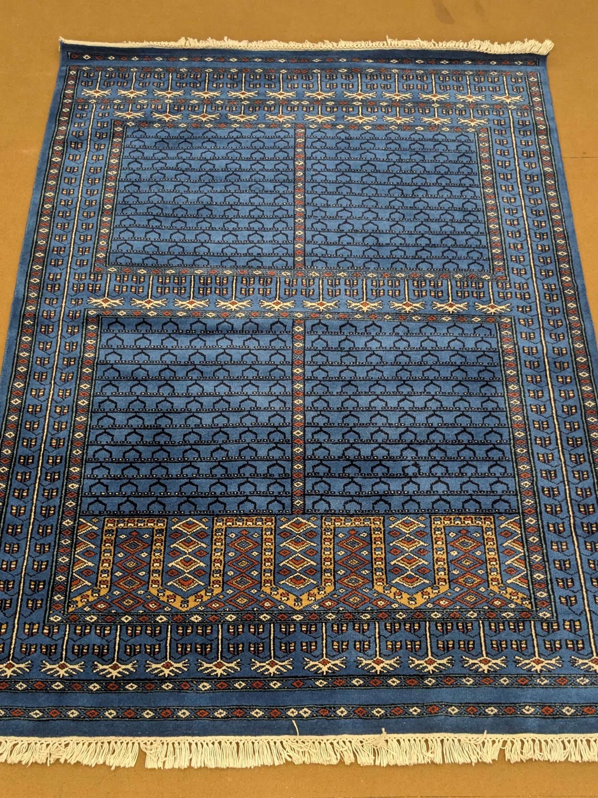- The finished handmade carpet is now ready to be used or sold.