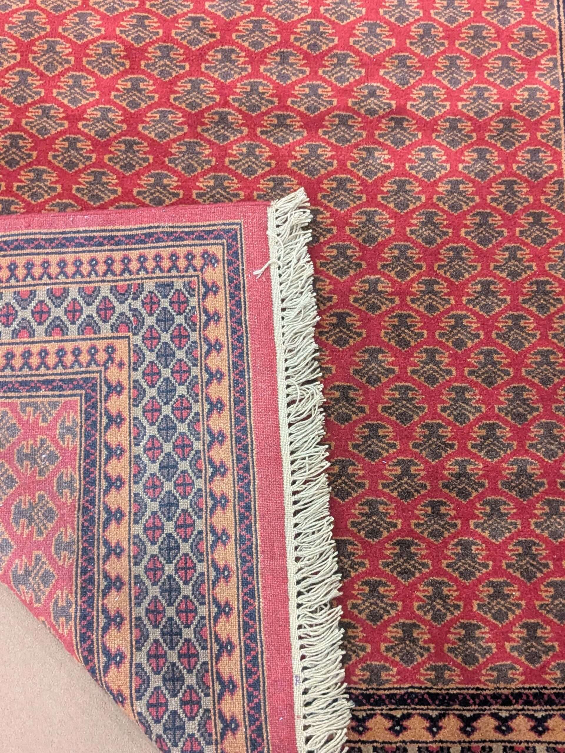 - Once the carpet is woven, the excess threads are trimmed and the surface is made even.