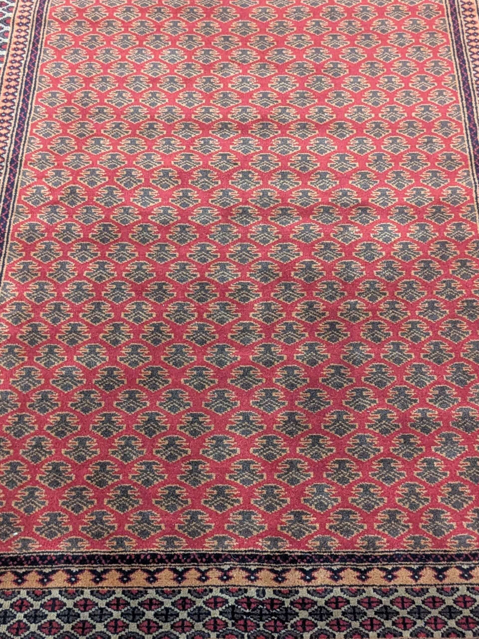 Red Baby Elephant Foot Print Hand Knotted Wool Carpet – 5FT X 7FT | 150CM X 210CM