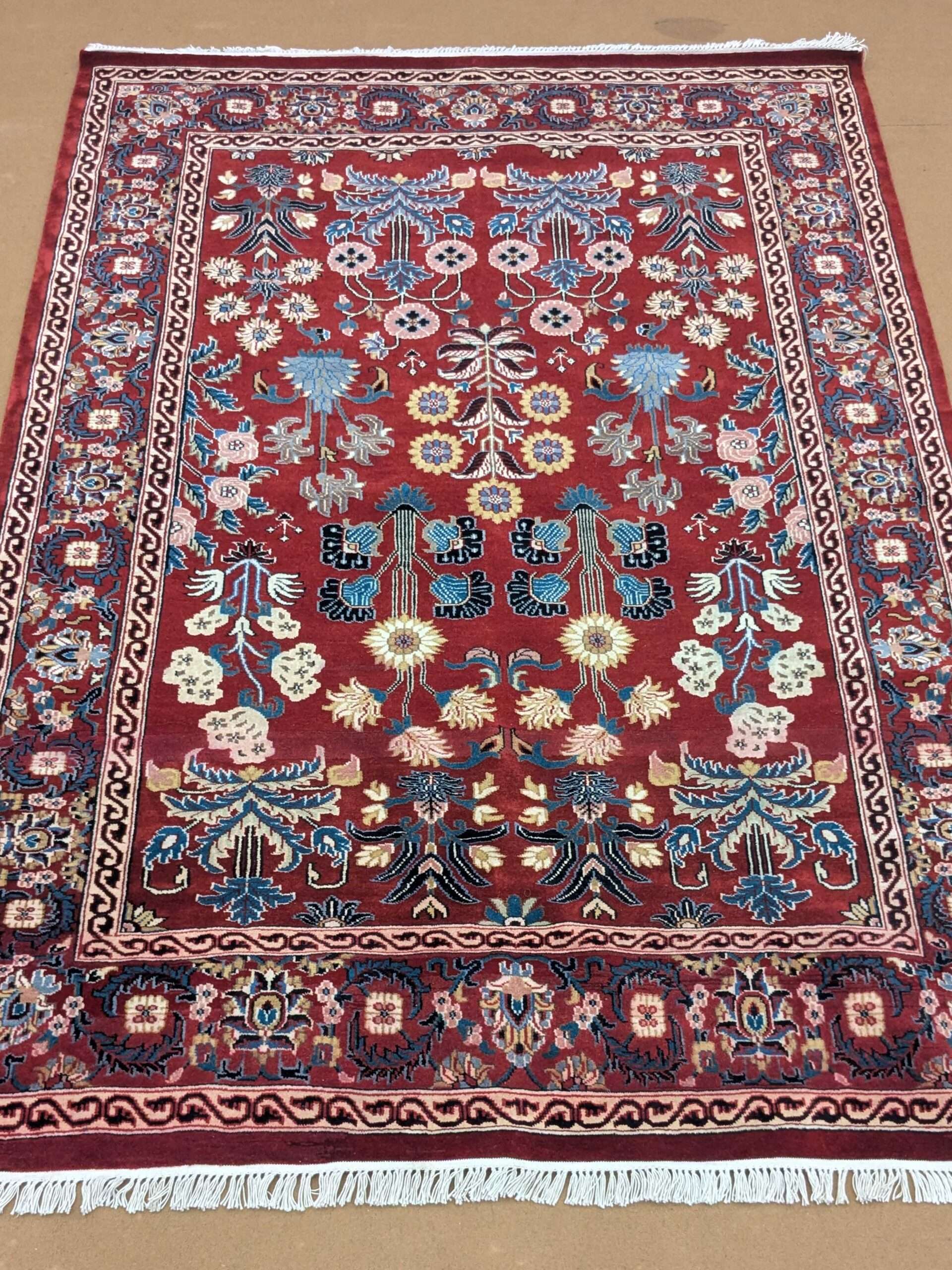 Red Floral Tribal Design Hand Knotted Wool Carpet – 5FT X 7FT | 150CM X 210CM