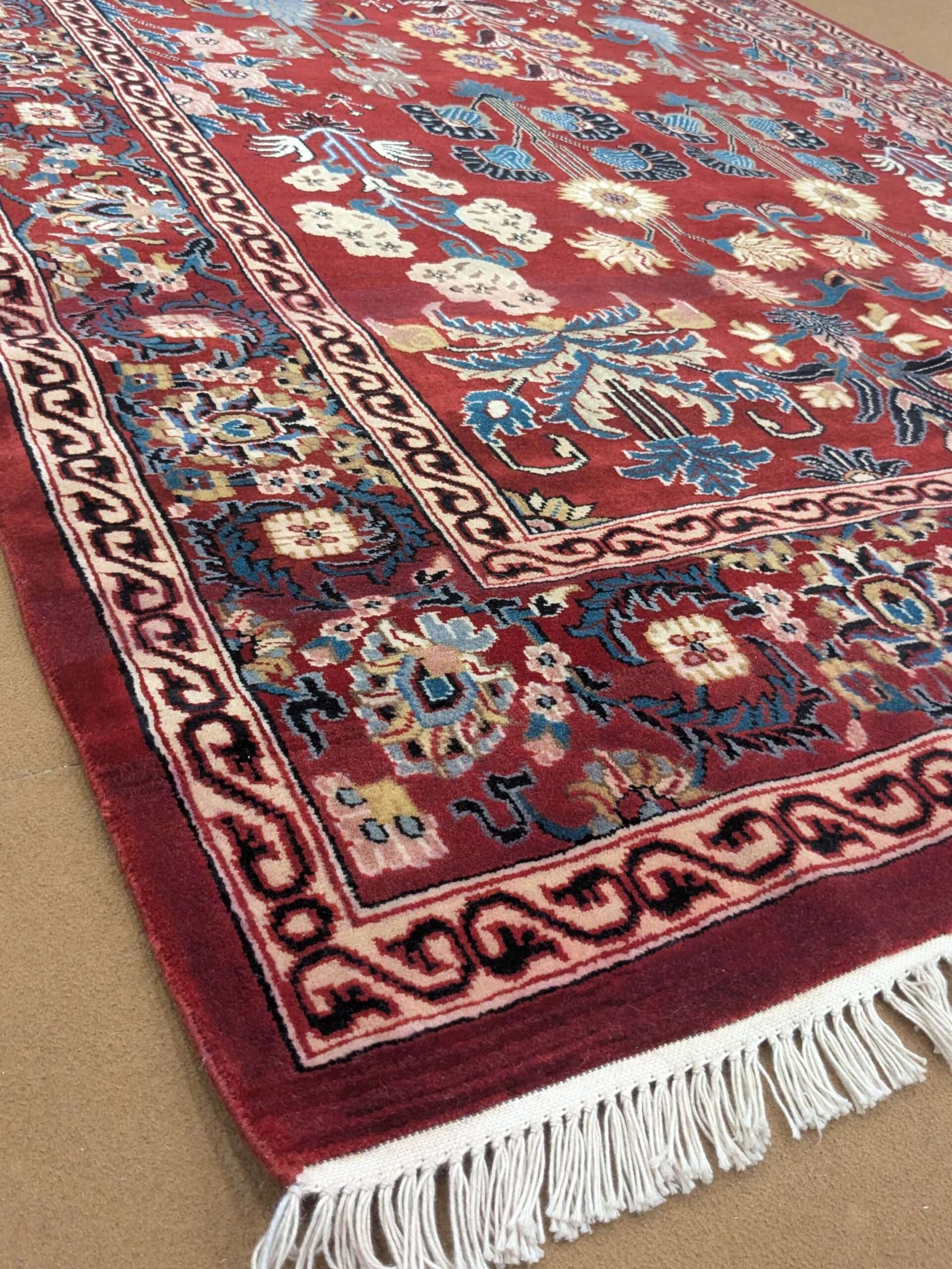 The carpets from Agra often feature intricate motifs inspired by Mughal art, floral patterns, geometric designs, or even scenes from nature and historical events. The quality of craftsmanship and attention to detail make these carpets highly sought after and cherished worldwide.