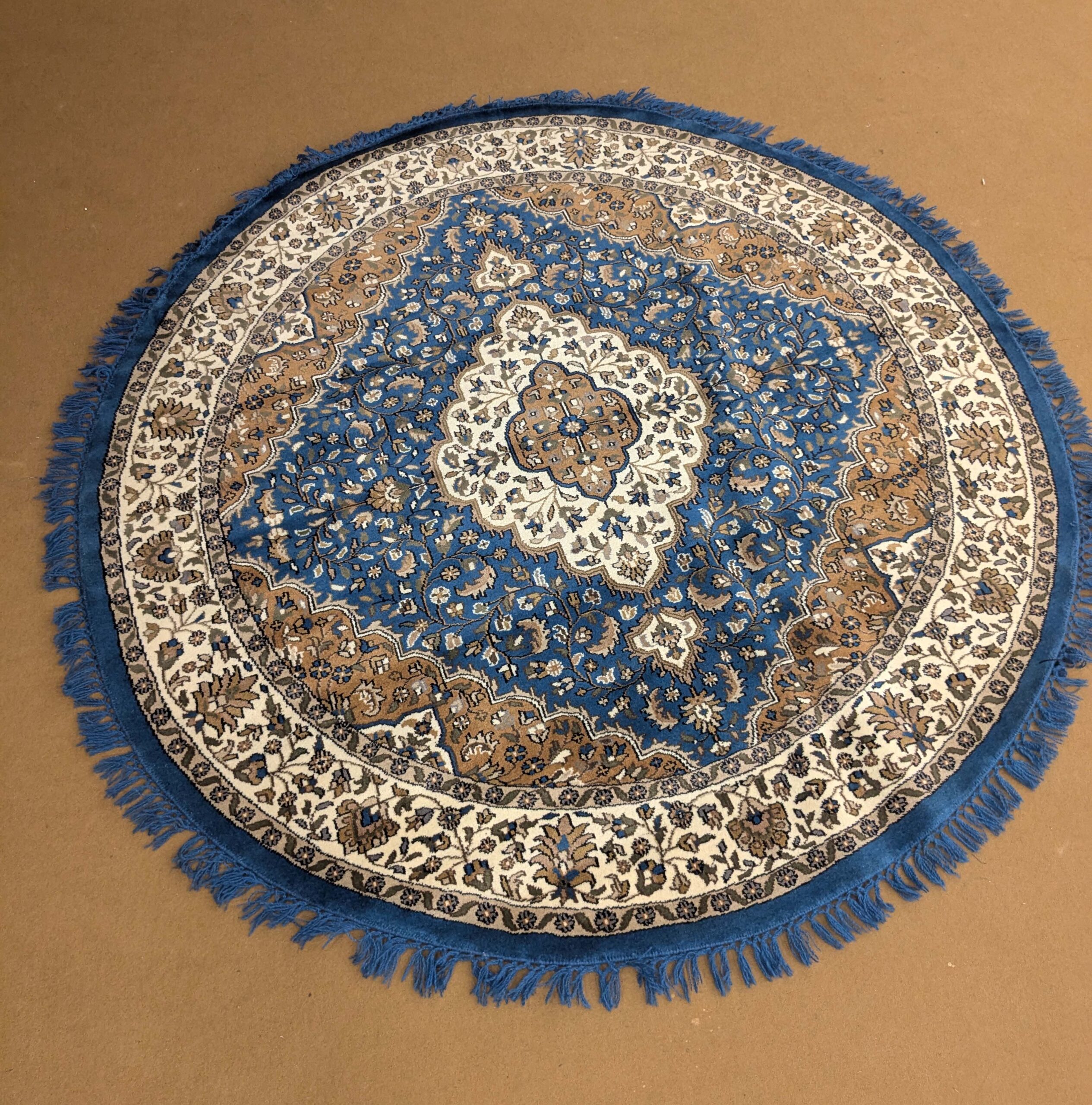Blue Persian Hand Knotted Round Wool Carpet – 6FT X 6FT | 180CM X 180CM