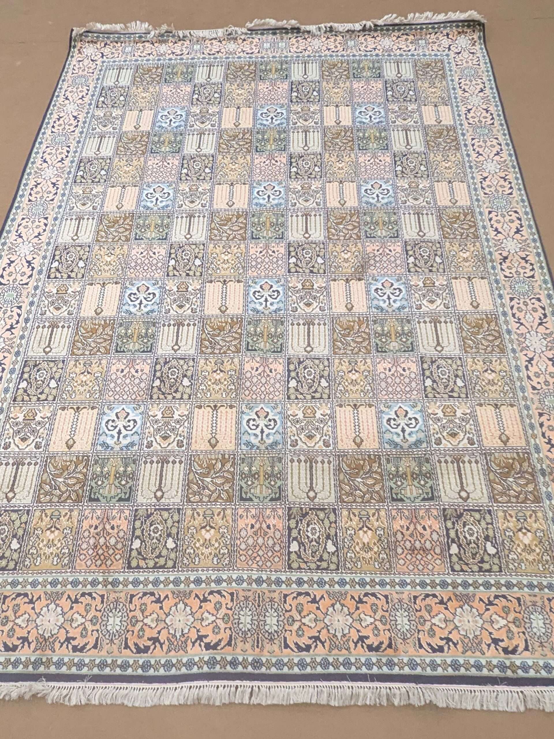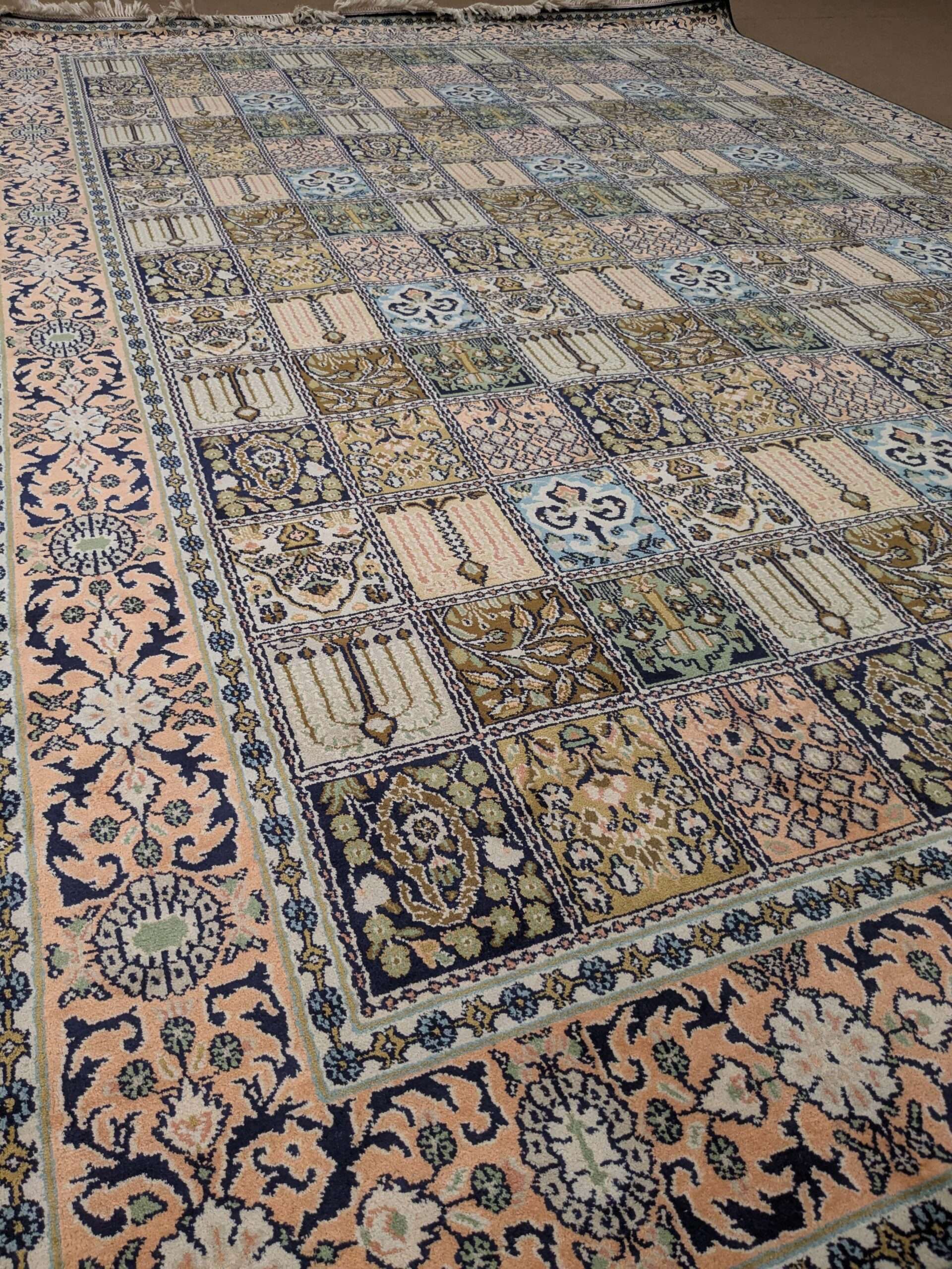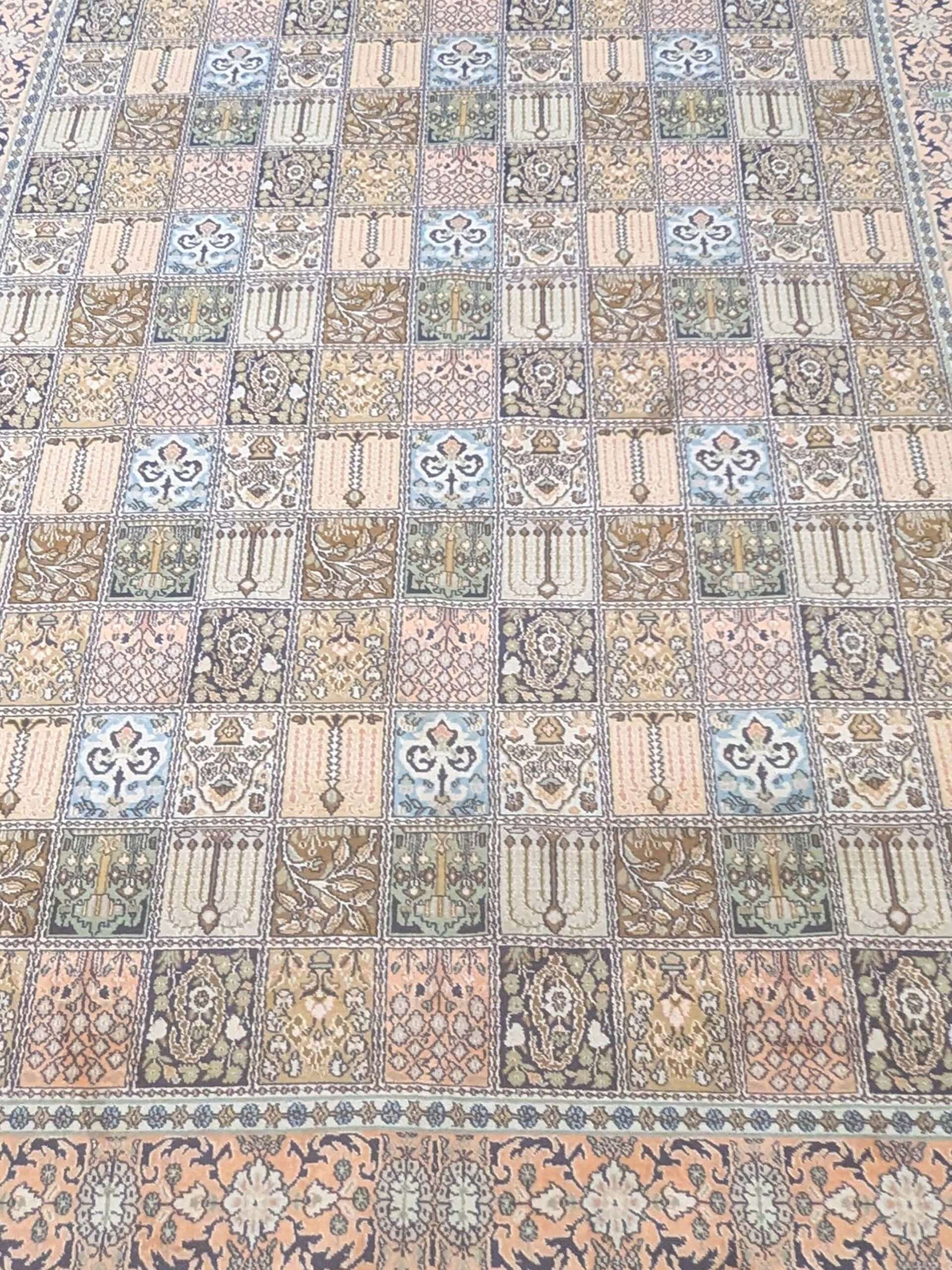 Handmade carpets are known for their durability. They are typically made from high-quality natural materials such as wool or silk, which can withstand wear and tear for many years. Additionally, the hand-knotting process ensures that the carpet is tightly woven, making it more resistant to damage and deformation.