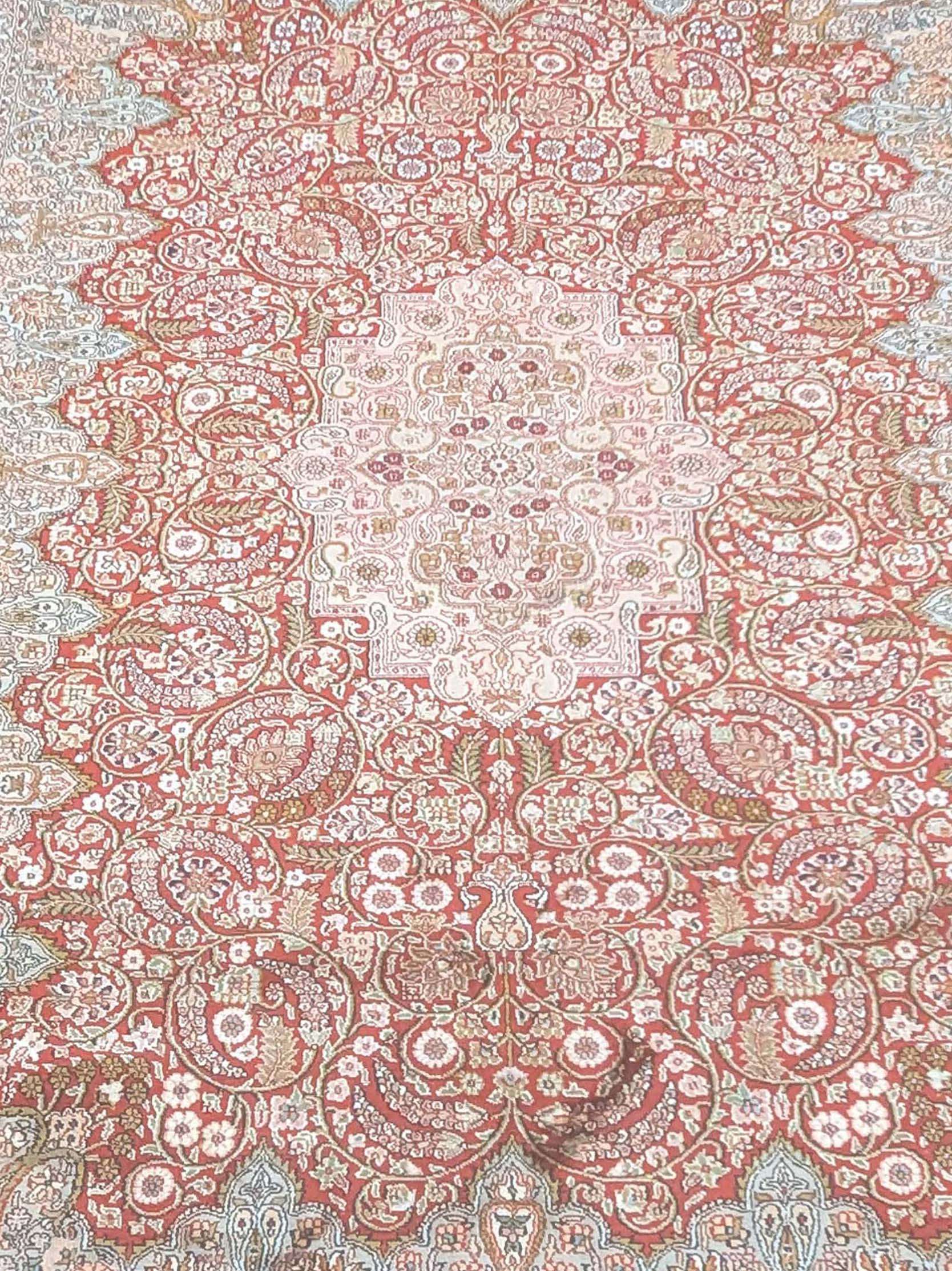 Be the first to review “Kirman Silk On Cotton Knotted Carpet – 6FT X 9FT | 180CM X 270CM”
