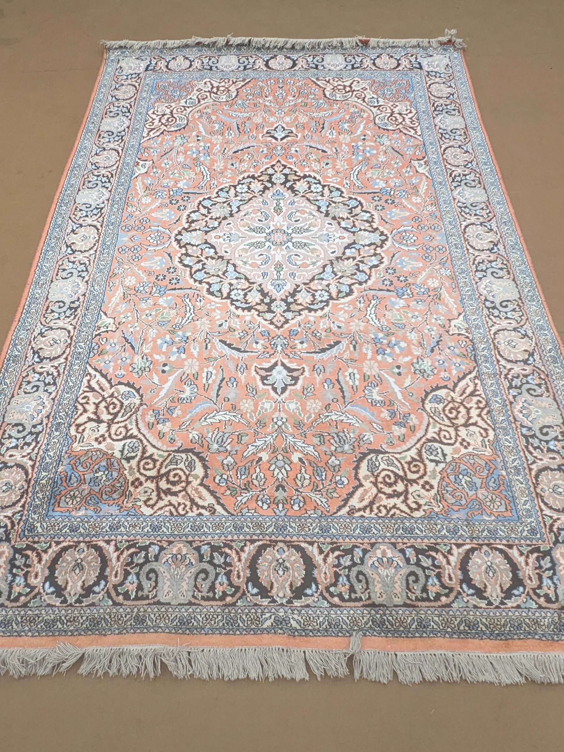 Orange Persian Silk On Cotton Knotted Carpet – 6FT X 9FT | 180CM X 270CM