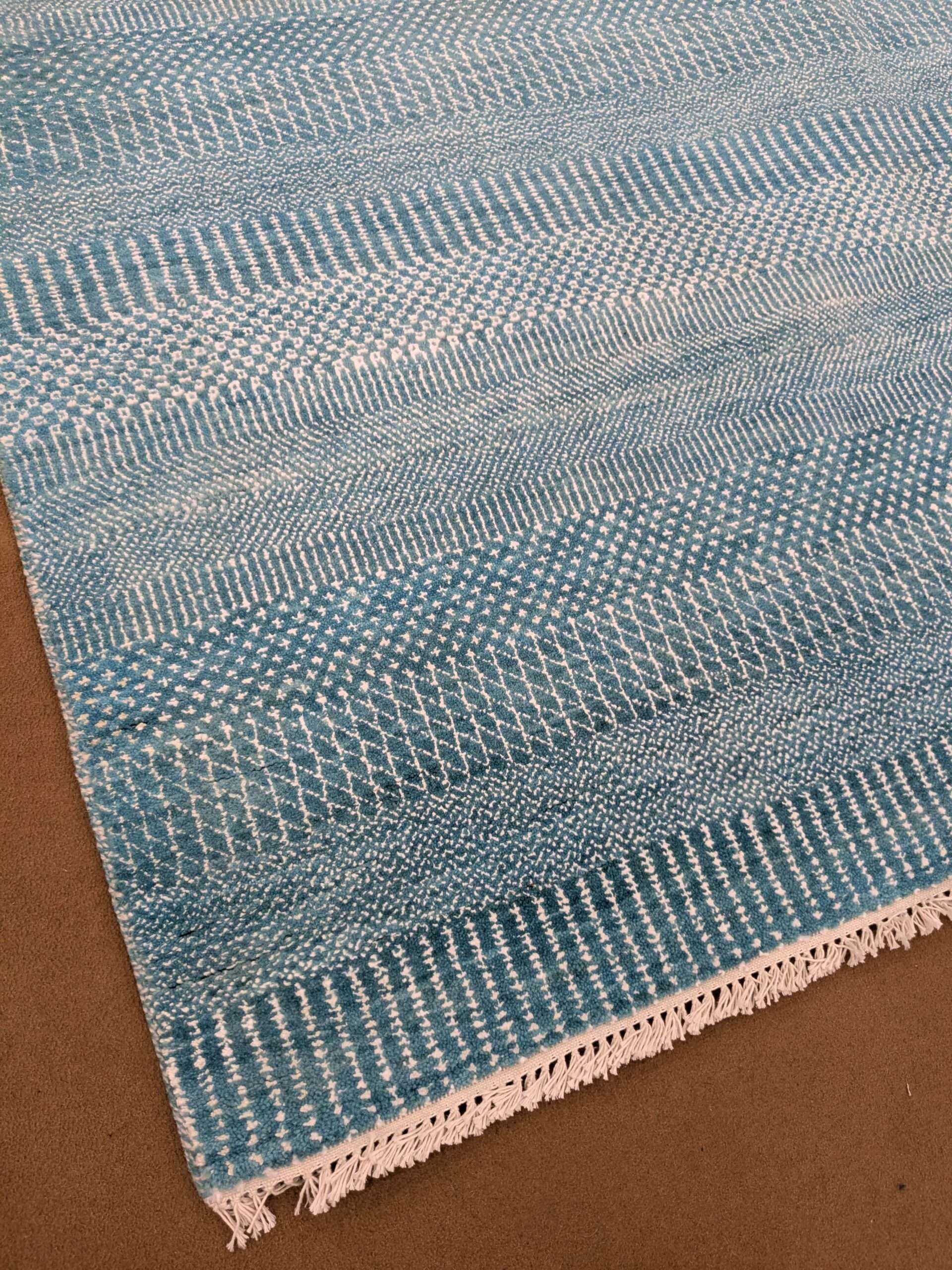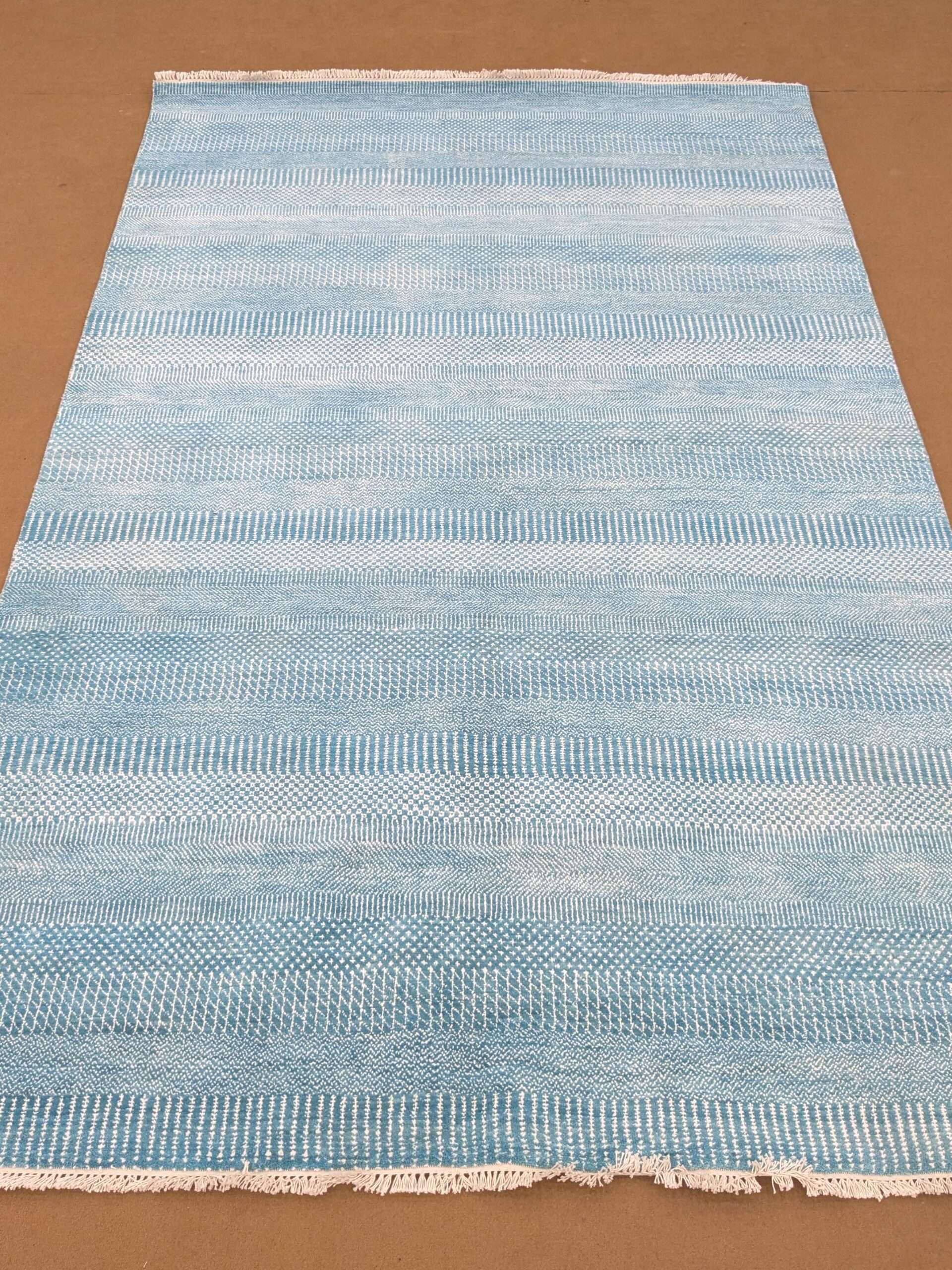 Blue Stripe Hand Knotted Wool Carpet – 6FT X 9FT | 180CM X 270CM
