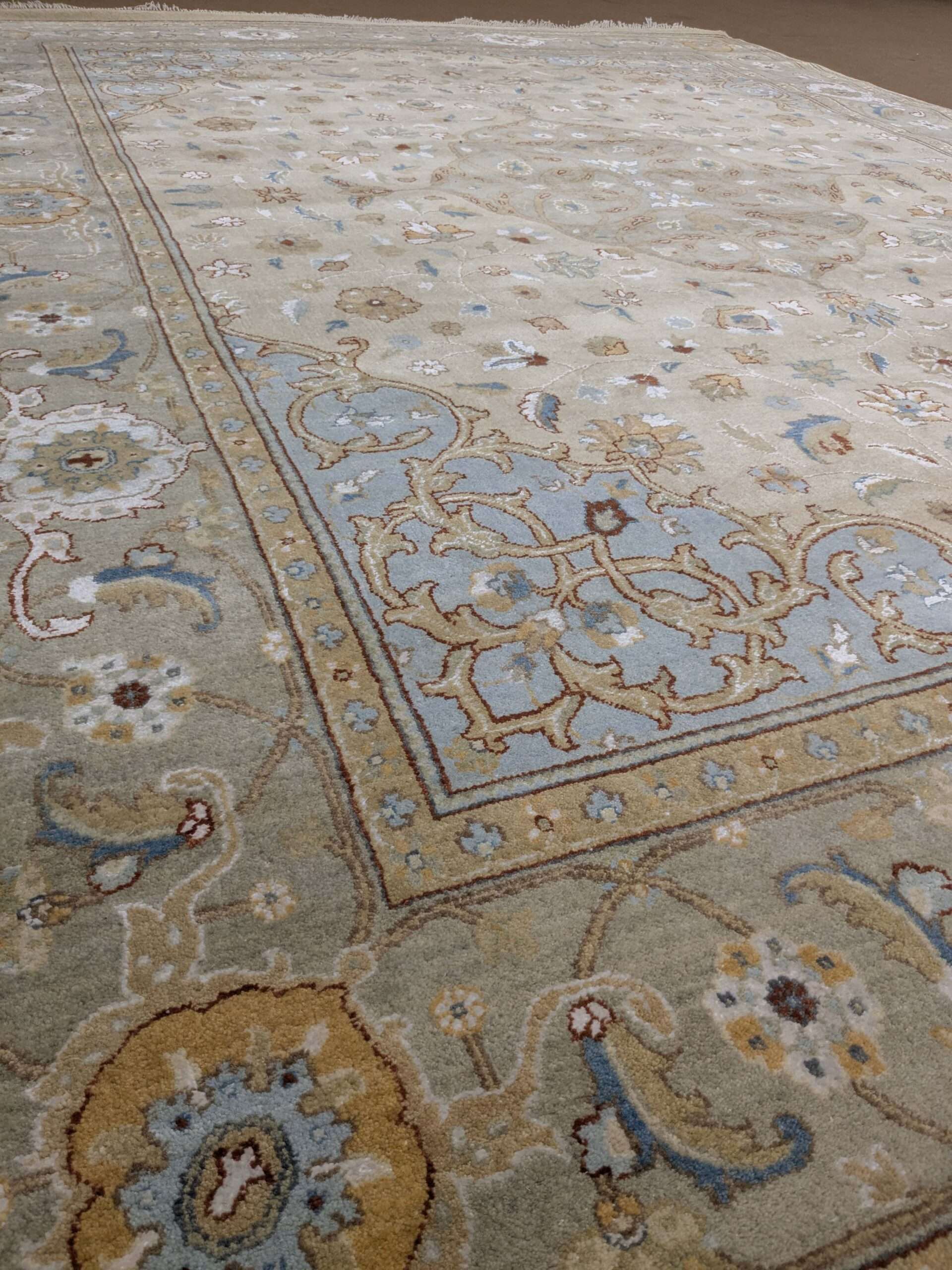 The carpets from Agra often feature intricate motifs inspired by Mughal art, floral patterns, geometric designs, or even scenes from nature and historical events. The quality of craftsmanship and attention to detail make these carpets highly sought after and cherished worldwide.