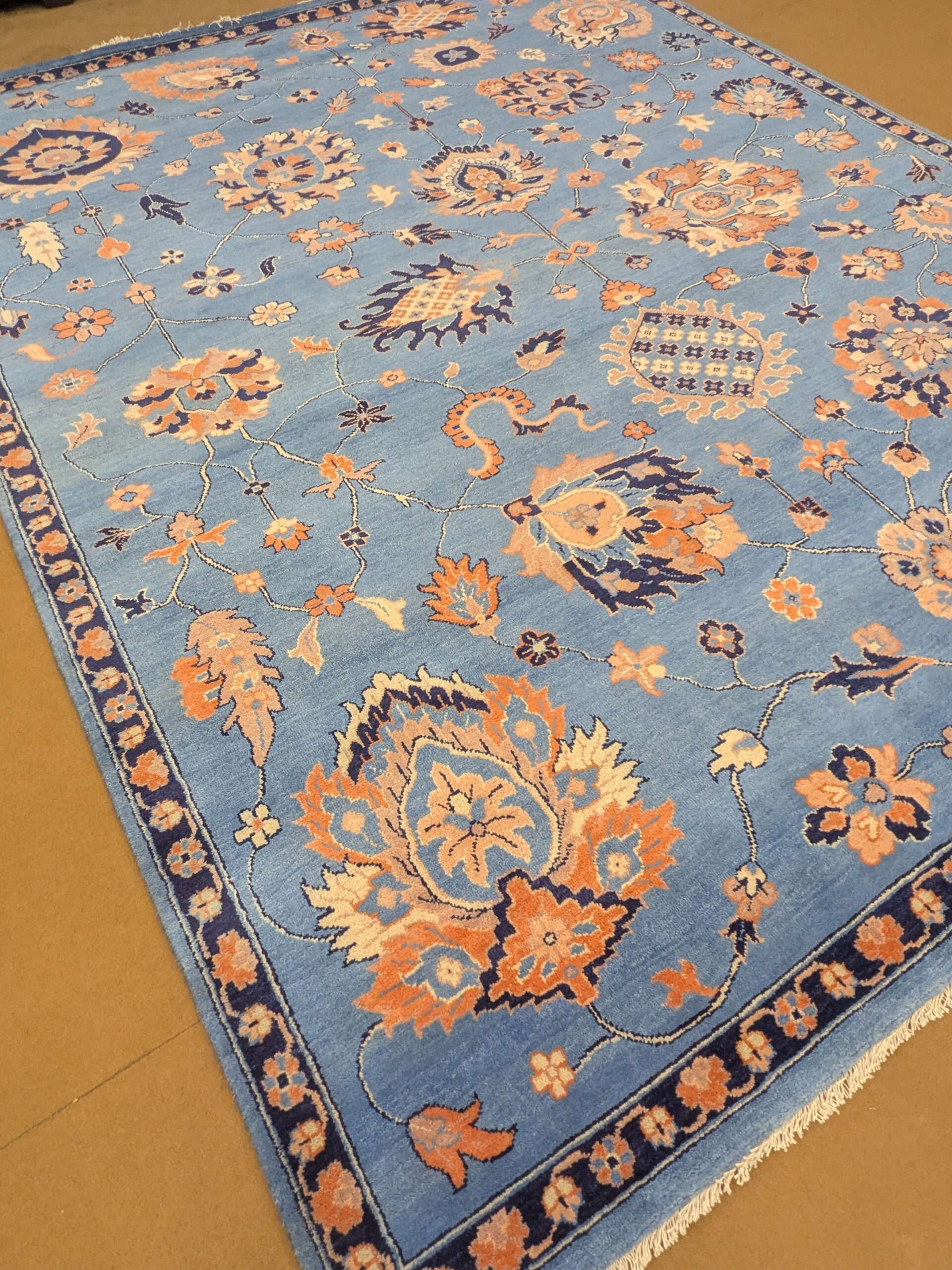 Blue Floral Tribal Knotted Wool Carpet – 8FT X 10FT | 240CM X 300CM