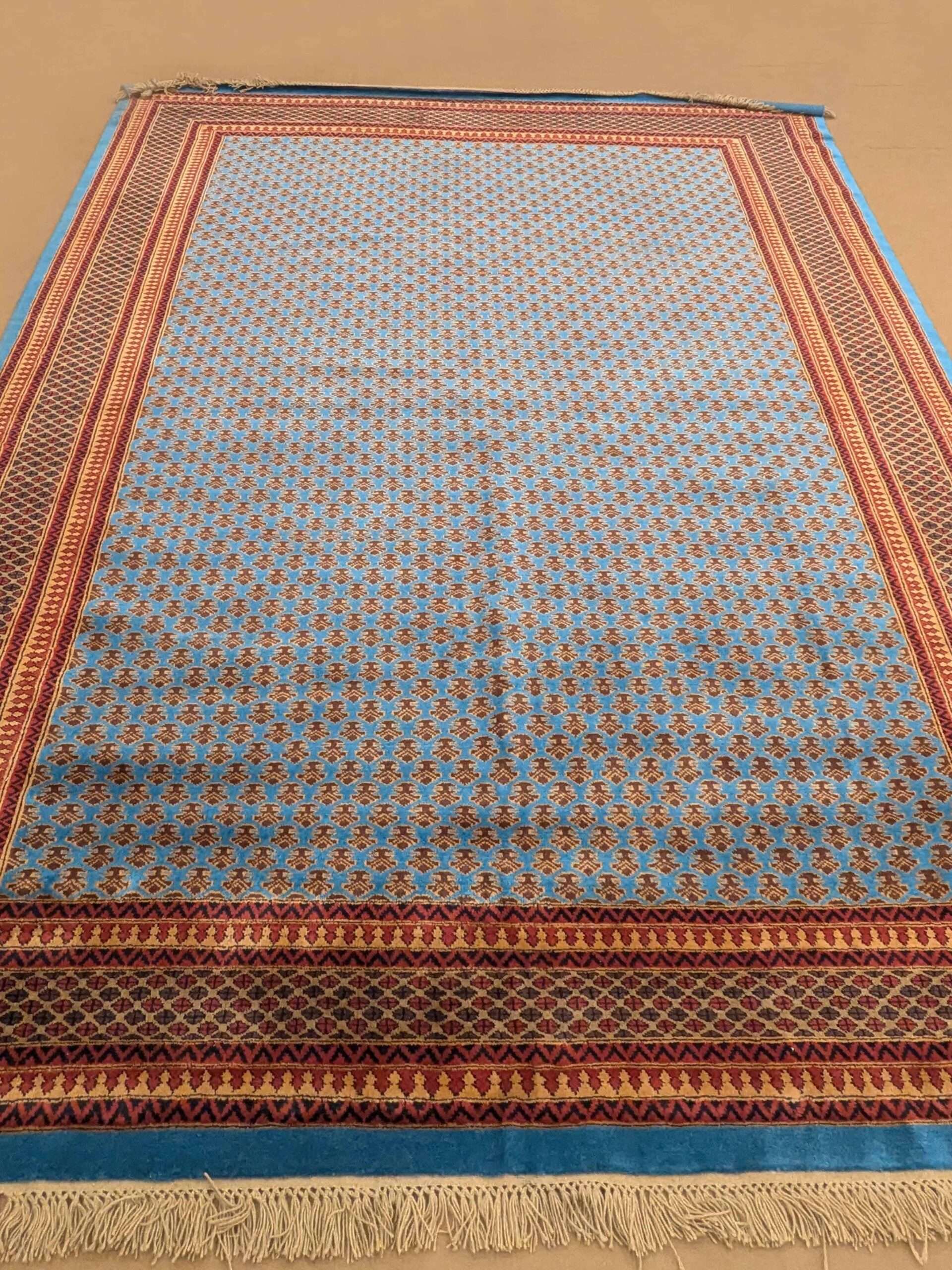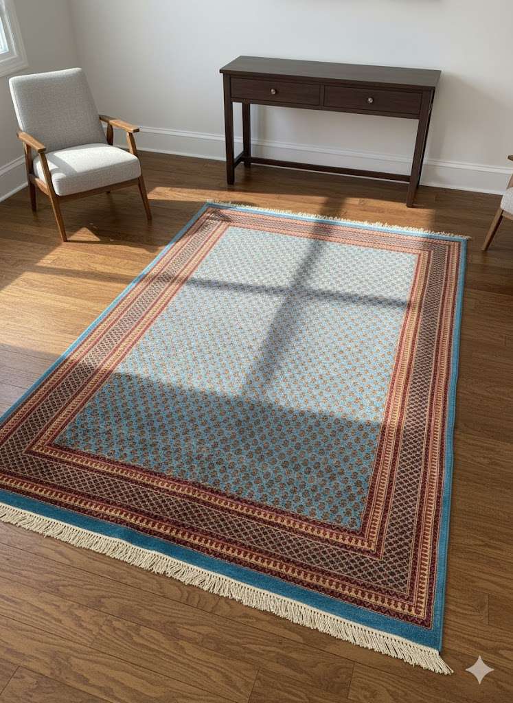 The carpets from Agra often feature intricate motifs inspired by Mughal art, floral patterns, geometric designs, or even scenes from nature and historical events. The quality of craftsmanship and attention to detail make these carpets highly sought after and cherished worldwide.